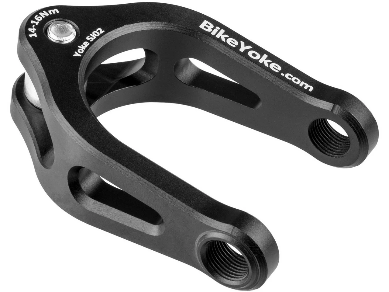 BikeYoke ist eine clevere Dämpferverlängerung, die es Dir ermöglicht, in Deinem Specialized anstatt der Standard Specialized Dämpfer, Dämpfer verschiedenster Hersteller mit 12,7 mm Dämpferaugen zu verwenden. Es ersetzt einfach das originale “ Clevis“ von Specialized. Die Befestigungsteile zur Anbindung an den Hinterbau können von der originalen Version weiter verwendet werden.