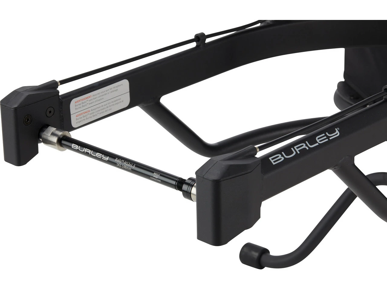 Mit der Burley Ballz Steckachse spannst Du den Coho XC Fahrradanhänger an Bikes mit 12-mm-Hinterradachsen an.