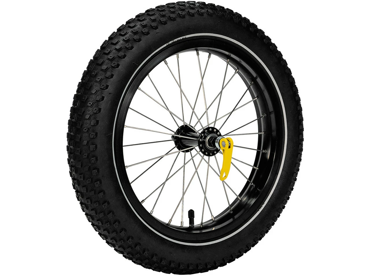 Das Coho 16+ Laufrad von Burley ist speziell für den Coho XC Transportanhänger entwickelt und verfügt über einen 16 x 3″ Stollenreifen, der ein verbessertes Handling auf unbefestigtem Untergrund wie Geröll, Sand oder Schnee ermöglicht. Damit steht Deiner Tour mit dem Coho XC Transportanhänger nichts mehr im Wege. Der Reifendruck lässt sich ganz nach Belieben anpassen – mit etwas weniger Luft werden Unebenheiten vom Reifen so gut wie absorbiert.