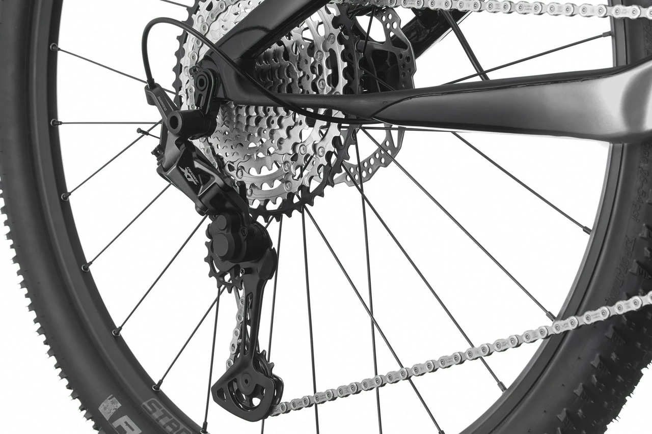 Die asymmetrische Integration (Ai) setzt den Antrieb 6 mm weiter nach außen als bei ursprünglichen Antriebssystemen mit 142 mm Hinterrad-Einbaubreite und 3 mm weiter nach außen als bei üblichen 148-mm-Konfigurationen. Dies geschieht durch einen asymmetrischen Hinterbau. Daraus ergibt sich eine erhöhte Reifenfreiheit, nicht nur, aber auch bei Nutzung eines Umwerfers. Dies ermöglicht wiederum kürzere Kettenstreben, was hohe Traktion und ein wendiges Handling mit sich bringt. Desweiteren ergeben sich Vorteile in der Hinterrad-Bauweise: Die Speichen links wie rechts haben dieselbe Länge, Spannung und denselben Winkel, sodass Du von einem bis zu 60 % steiferen Laufrad profitierst, ohne Kompromisse eingehen zu müssen. Um den Offset umzusetzen, wird auch das Kettenblatt weiter nach außen gesetzt.