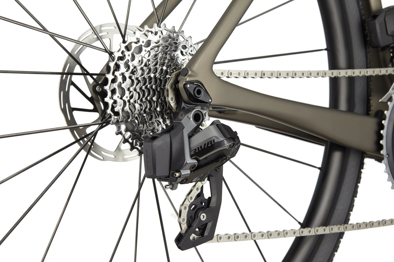 Das SuperSix EVO SE Gravelbike von Cannondale aus leichtem Carbon kombiniert die hervorragenden Renneigenschaften des SuperSix EVO mit einer geländeorientierteren Geometrie, hoher Reifenfreiheit und widerstandsfähigem Rahmen. Kurze Kettenstreben sorgen für gute Traktion und erlauben dank Ai Offset dennoch breite Reifen und die Montage eines Umwerfers. Die elektronische SRAM Rival AXS Schaltung kommt ohne Züge aus. Hoher Fahrkomfort entsteht durch das Zusammenspiel aus SAVE-Technologie, tiefen Sitzstreben sowie HollowGram KNØT Carbon-Sattelstütze.