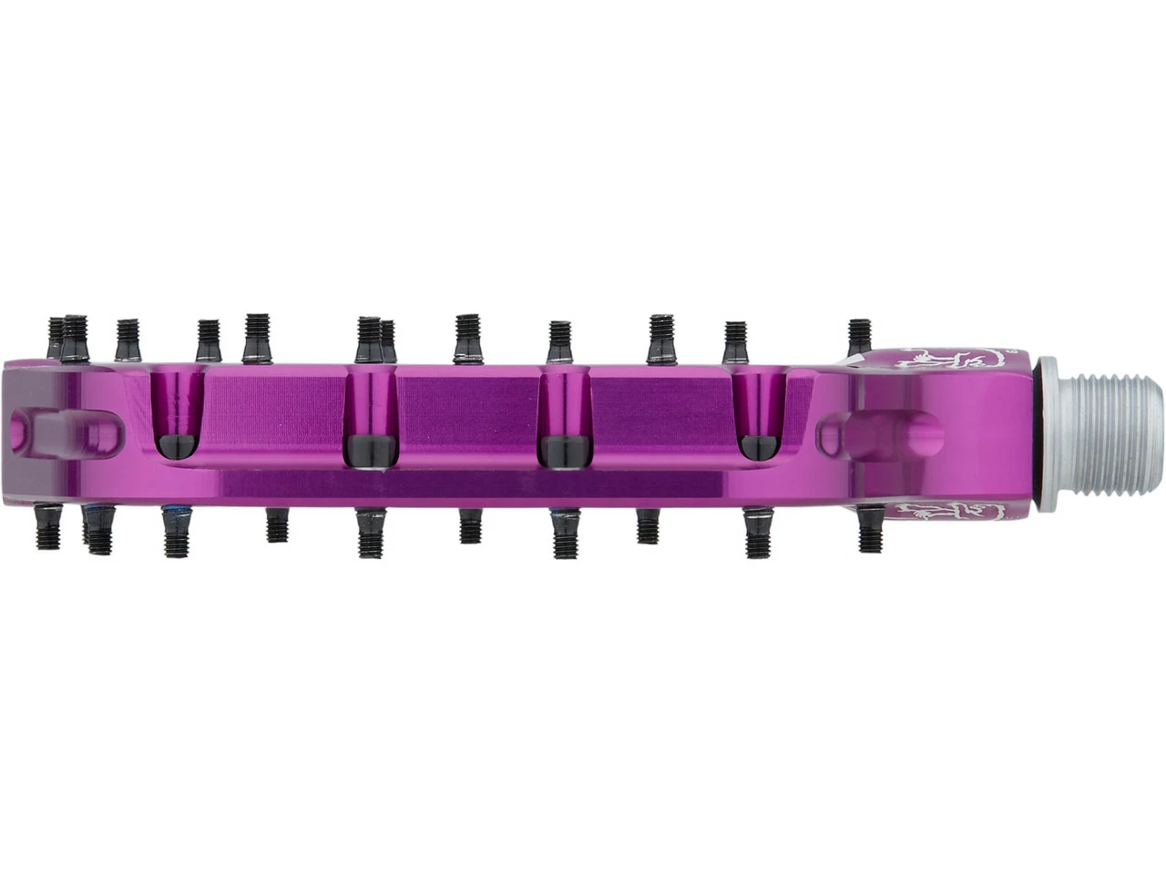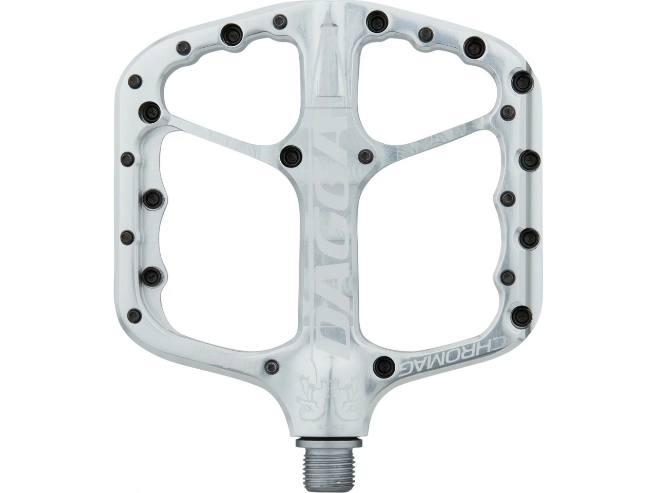 Die Dagga Plattformpedale besitzen die größte Plattform und breiteste Trittfläche im Chromag-Sortiment und bieten Dir somit viel Platz, um mit Hilfe der 24 höhenverstellbaren Pins sicheren Halt für Deine Füße zu finden. Die Pedaldicke beträgt in der Mitte 14,3 mm. Dagga kommt mit abgedichteten Lagern (außen) und einer Buchse (innen), die sich um eine robuste Chromoly Achse schmiegen.