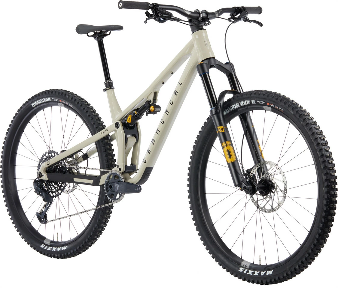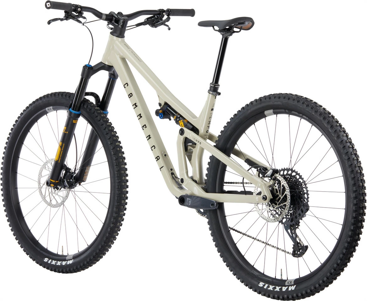 Spezifikationen:Einsatzbereich:All MountainLaufradgröße:29″Federweg vorne:140 mmFederweg hinten:125 mmGrößen:S, M, L, XLMaterial Hauptrahmen:Aluminium (6066)Material Hinterbau:Aluminium (6066)Komponenten:Rahmen:COMMENCAL T.E.M.P.O., doppelt konifiziert, 12 x 148 mm (Boost)Gabel:ÖHLINS RXF36 m.2 Air, TTX-18-Dämpfung, Ramp Up Chamber, HSC, LSC, Rebound, 51 mm Vorlauf, 15 x 110 mm (Boost)Vorbau:Ride Alpha 40, 40 mm, 31,8 mmLenker:Ride Alpha R20, 20 mm Rise (S); R27, 27 mm Rise (M-XL), 31,8 mmGriffe:ODI Elite MotionDämpfer:ÖHLINS TTX1 Air, 210 x 50 mm, HSC, LSC, Rebound, 3 Positionen, Evol LVRemote System:ohneSteuersatz:Acros ZS56 – ZS56, gedichtete LagerSattelstütze:KindShock Lev Integra, 31,6 mm, Hub: 150 mm (S), 175 mm (M), 200 mm (L, XL)Sattel:Fizik Terra Alpaca X5, 145 mm, S-Alloy-StrebenKurbel:SRAM GX Eagle, 170,0 mm, 32 Zähne, mit SRAM DUB-Pressfit-InnenlagerPedale:ohneBremsen:TRP Trail Evo, 4 Kolben, Resin-Bremsbeläge, mit Bremsscheiben TRP R1, 6-Loch, 203 mm / 180 mmSchalthebel:SRAM GX Eagle, 12-fachSchaltwerk:SRAM GX Eagle, 12-fachKassette:SRAM GX Eagle, 12-fach, 10-52 ZähneKette:SRAM GX Eagle, 12-fachFelgen:crankbrothers Synthesis Enduro Alloy, 28 Loch, 31 mm Maulweite (VR); 32 Loch, 29,5 mm Maulweite (HR)Speichen:Sapim D-Light, J-Bend, 2,0 – 1,65 – 2,0 mm, konifiziert, Edelstahl, verschweißt, schwarzVorderradnabe:Industry Nine 1/1, 28 LochHinterradnabe:Industry Nine 1/1, 32 LochReifen Vorderrad:Maxxis DHR II, 29 x 2,4″ , WT, 3C MaxxGrip, EXO, Tubeless ReadyReifen Hinterrad:Maxxis Dissector, 29 x 2,4″ , WT, Dual Compound, EXO, Tubeless ReadyFreigaben:Bremsscheibengröße max.:200 mm (hinten)Reifengröße max.:29 x 2,4″ (hinten)Kettenblattanzahl:1-fachGabeleinbaulänge max.:561 mmFeatures:All-Mountain-Bike mit ÖHLINS-Fahrwerk und SRAM GX-Eagle-Antrieb für Trails aller ArtVirtual Contact System: virtueller Drehpunkt für hohe Dynamik und KomfortGeometrie für effizienten Anstieg und kompromisslose Abfahrtenleistungsstarke ÖHLINS RXF36 Federgabelauf die Kinematik des Bikes abgestimmter ÖHLINS TTX1 Air Dämpfer mit verschiedenen Einstellungsoptionenhochwertige, endurotaugliche crankbrothers Synthesis LaufräderIndustry-Nine-Naben, Freilauf mit niedrigem Eingriffswinkel von 4°zuverlässiger SRAM GX-Eagle-Antrieb mit hoher Bandbreite2 Flaschenhalteraufnahmen: am Unterrohr für Trinkflasche, unten am Oberrohr für ZubehörtascheGeometrie:(basierend auf einer Gabeleinbaulänge von 551 mm)