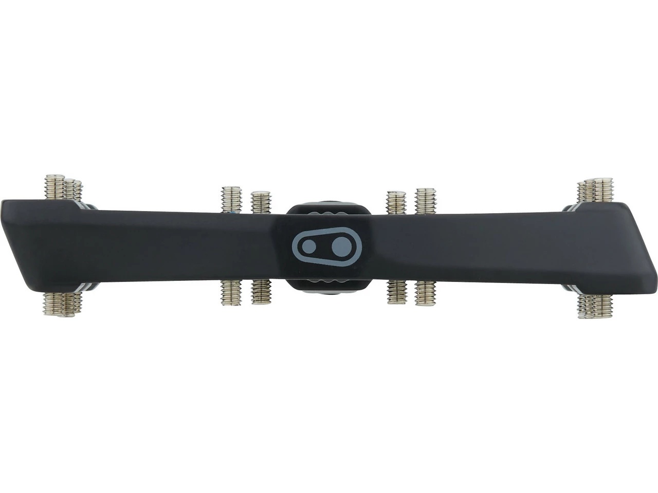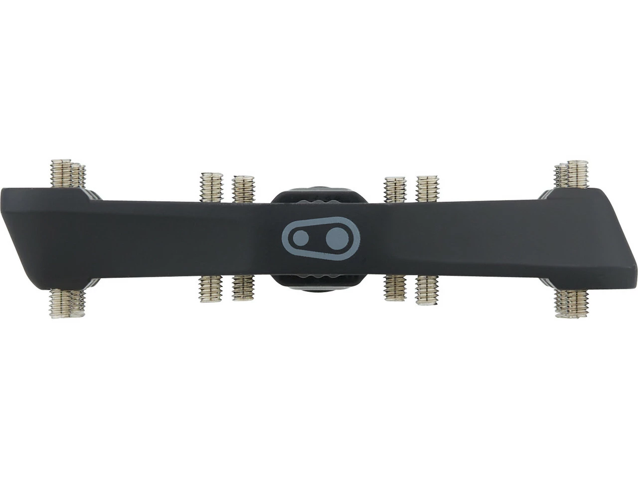 Spezifikationen:Einsatzbereich:All Mountain, Enduro, DownhillAusführung:PlattformpedaleTechnische Daten:Material Pedalkörper:Magnesium, Aluminium (AM60B)Material Achse:Stahl (SCM 415 CrMo)Lagerung:Igus Gleitlager (innen), Industrielager (außen)Bauhöhe:16 mm (ohne Pinhöhe)Maße [L x B]:100 x 100 mm (small), 114 x 111 mm (large)Anzahl Pins pro Pedal:20Features:kürzere ChroMoly-Achse, optimiert für E-MTB-EinsatzPedalkörper aus Magnesium-Alu-Legierunggeschmiedete Stahlachseflache Bauhöhegefaste Pedalkörperecken gegen Fels- und Steinkontakt10 einstellbare Pins auf jeder Pedalseite für optimalen GripPremium-Lager und –DichtungenT15-Endkappenkein Fahrergewichtslimiterhältlich in 2 Größen, optimiert für unterschiedliche SchuhgrößenAusführungen:small: