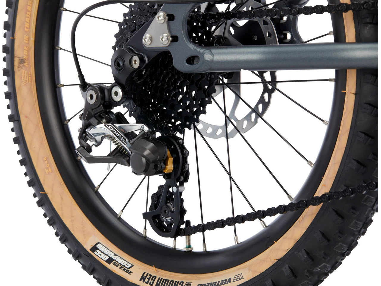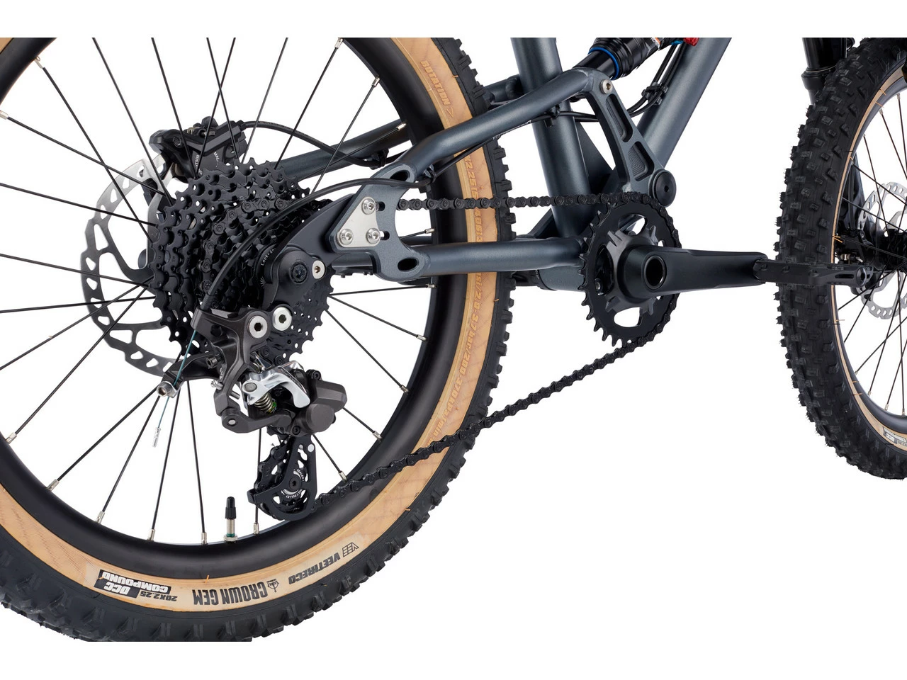 Spezifikationen:Einsatzbereich:Kids, All Mountain, EnduroLaufradgröße:20″Federweg vorne:100 mmFederweg hinten:95 mmMaterial Hauptrahmen:AluminiumMaterial Hinterbau:AluminiumKomponenten:Rahmen:EARLY RIDER Hellion X 20, 12 x 142 mmGabel:RST Spex, Federweg 100 mm, 15 mm Steckachse aus Aluminium (7075)Vorbau:Ritchey OS, Reach 35 mm, Aluminium (6061)Lenker:Ritchey OS, konifiziert, Aluminium (6061), Breite 560 mm, Rise 18 mmGriffe:EARLY RIDER Lock On Kraton, 92 mmDämpfer:DNM AO-38RC, 152 x 25,4 mm, Rebound Adjust, Pedal PlatformSteuersatz:EARLY RIDER 1 1/8″ , PatronenlagerSattelstütze:Ritchey 30,9 x 225 mm, Aluminium (2014), mit Sattelklemme Promax Jr, 34,9 mmSattel:SDG Fly JrKurbel:Samox 127 mm Direct Mount, 30-Z-Kettenblatt aus StahlPedale:SDG Slater 90Bremsen:Shimano Deore BR-MT500, RT66 Bremsscheiben 160 mm, mit Shimano Deore BL-MT501 BremshebelSchalthebel:SRAM GX 10-fach TriggerSchaltwerk:Shimano Saint 10-fach, Käfiglänge kurzKassette:SRAM PG-1020 10-fach, 11-36 ZKette:KMC X10Felgen:Double Wall 28 Loch, pinned, Tubeless Ready, Aluminium (6061)Vorderradnabe:Aluminium (6061), Straight Pull, 15 x 100 mm SteckachseHinterradnabe:Aluminium (6061), Straight Pull, 12 x 142 mm SteckachseReifen Vorderrad:Vee Crown Gem Skinwall 20 x 2,25″ , 72 tpi, TRReifen Hinterrad:Vee Crown Gem Skinwall 20 x 2,25″ , 72 tpi, TRFreigaben:Gewichtsbeschränkung:40 kgBremsscheibengröße max.:160 mmFeatures:empfohlen für Kinder zwischen 4 und 8 Jahrenab einer Innenbeinlänge von 53 cmGeometrie:(basierend auf einer Gabeleinbaulänge von 405 mm)