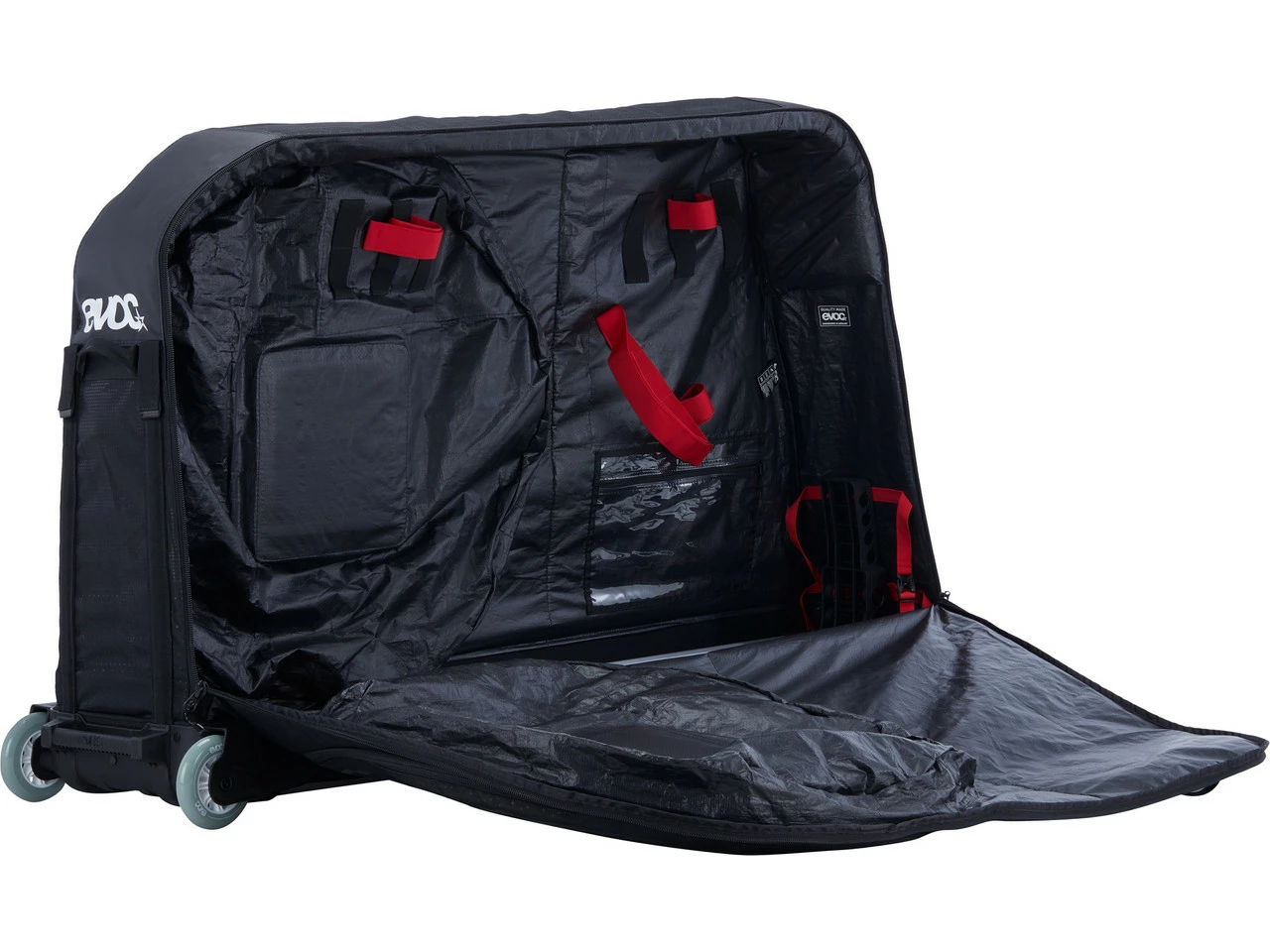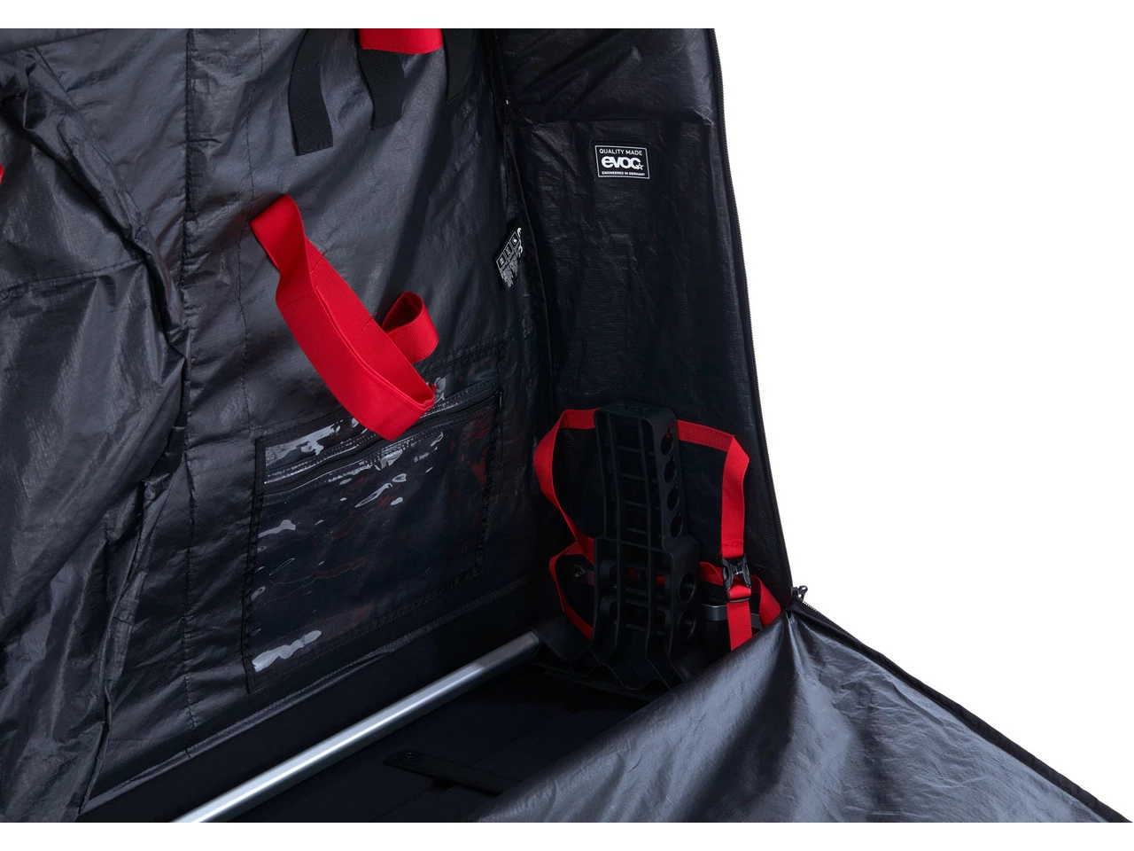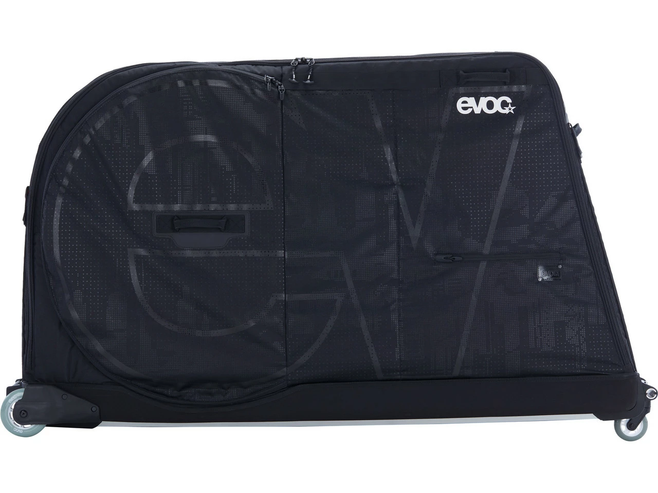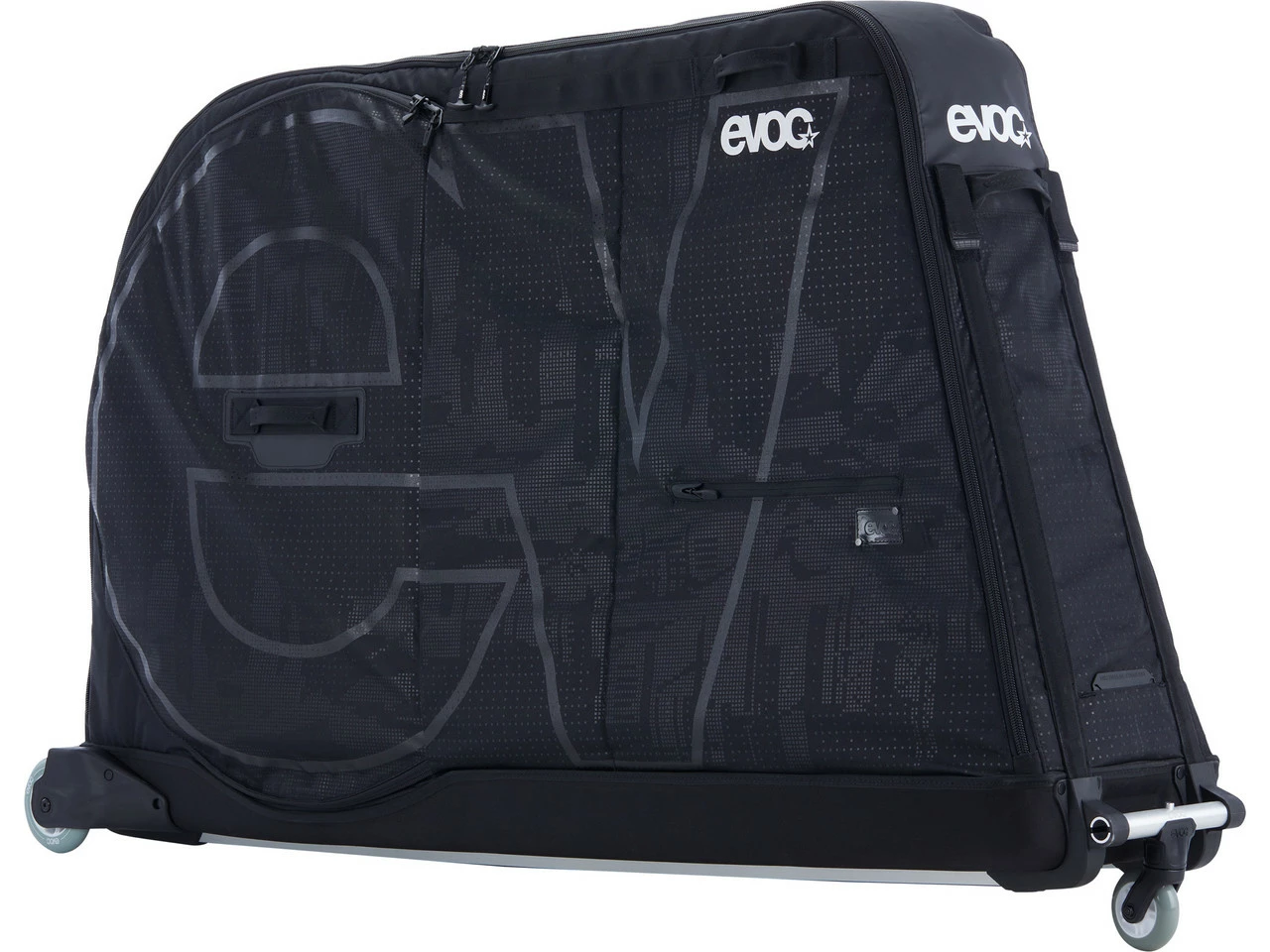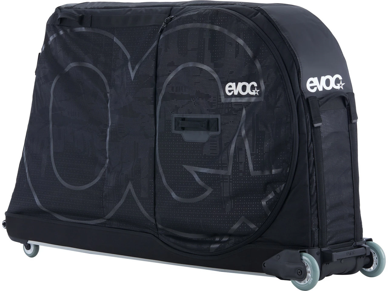 Mit der Bike Bag Pro Fahrrad-Transporttasche von evoc ist Dein Fahrrad auf Reisen bestens untergebracht. Du transportierst damit entweder ein 27,5″ Mountainbike oder aber ein Rennrad. Die Kombination aus Hartschale und Softcase schützt vor Schlägen und ist dennoch flexibel für unterschiedliche Bikes. In den Seitentaschen findest Du einen separaten Aufbewahrungsplatz für Deine Laufräder, deren Bremsscheiben dort außerdem zusätzlich vor Stößen geschützt sind. Für einen unkomplizierten Transport ist die Tasche rollbar und verfügt sogar über ein drittes, ansteckbares Rad. Der Fahrradhalter sorgt nicht nur beim verpackten Rad für einen stabilen Stand, sondern erleichtert Dir auch die Montage des Bikes am Zielort.