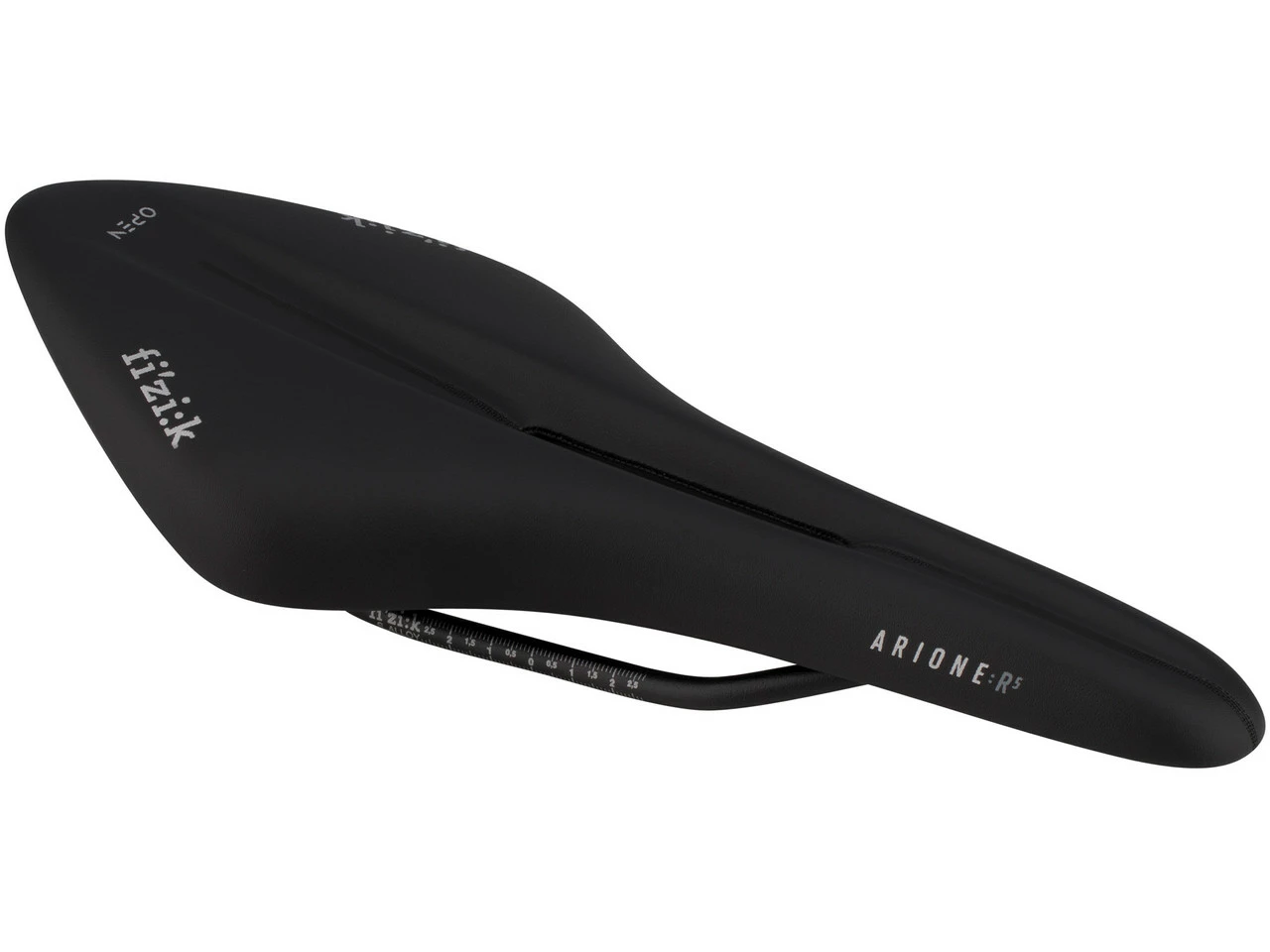 Der Arione R5 Open Sattel von Fizik ist ein flacher Road Sattel mit einer schmalen Nase. Er ist länger als andere Road Sättel von Fizik und bietet Dir so genug Platz, Deine Sitzposition anzupassen. Ein ergonomischer Ausschnitt an der Oberseite vermindert Druckstellen und schont das Weichgewebe.