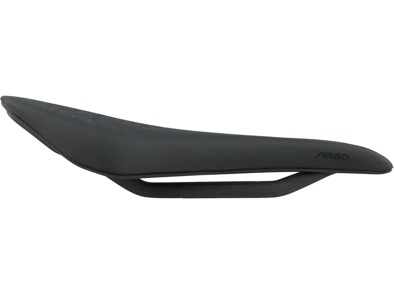 Der Vento Argo 00 Sattel von Fizik ist für Höchstleistungen bei Triathlon und Time Trial entwickelt worden. Sowohl die Schale als auch die Streben bestehen aus leichtem, stabilen Carbon. Die Form des Sattels mit der kurzen Nase und dem angewinkelten hinteren Teil hilft Dir dabei, die optimale Sitzposition auf Deinem Rennrad einzunehmen. Durch die geschwungene Form und die abgesenkte Nase neigt sich Dein Becken automatisch nach vorne. Diese Körperhaltung verbessert Atmung und Kraftübertragung. Eine ergonomische Aussparung in der Mitte des Sattels sorgt dafür, dass auch bei intensiven Strecken keine Belastung des Weichgewebes entsteht. Die flache Polsterung rundet das kompakte und leichte Design ab.