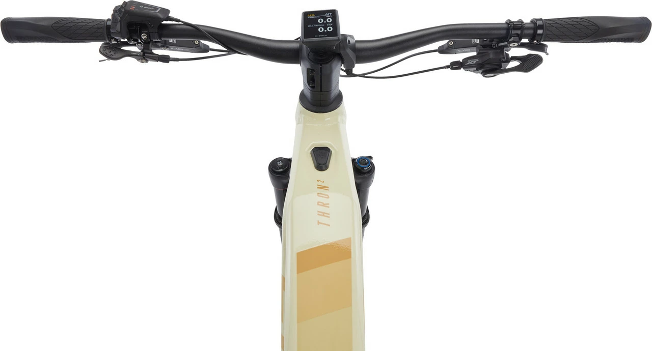 Spezifikationen:Einsatzbereich:All Mountain, Touring & Trekking, CityLaufradgröße:29″Federweg vorne:130 mmFederweg hinten:130 mmGrößen:M, L, XLMaterial Hauptrahmen:Aluminium (7005)Material Hinterbau:Aluminium (7005)E-Antrieb:Ausführung:MittelmotorMotortyp:Bosch Performance CX Smart, 85 NmUnterstützung max.:25 km/hLeistung:250 WAkkutyp:Bosch Powertube, 36 V, abnehmbar, abschließbarKapazität:750 Wh (20,8 Ah)Display:Bosch LED Remote + Kiox 300Komponenten:Rahmen:FOCUS THRON², hydrogeformtes Aluminium, 3D-geschmiedet, F.O.L.D. GEN2 Kinematik, interne Kabelführung, C.I.S.-Technologie, USB-C, Postmount 180 mm, 12 x 148 mm Steckachse (Boost)Gabel:RockShox 35 Gold RL 29 Boost, 44 mm Vorlauf, 15 x 110 mmVorbau:FOCUS C.I.S. integriert, Aluminium, 0°, 35 mm KlemmungLenker:FOCUS, 35 mm Rise, 9° BacksweepGriffe:FOCUSDämpfer:RockShox Deluxe Select, 210 x 50 mm, Hardware: 25,0 x 8 mmRemote System:ohneSteuersatz:Acros ZS56/ZS56, FOCUS C.I.S. integriertSattelstütze:Post Moderne Dropper Post PM-214, 34,9 mm, Einstecktiefe min. 100 mmSattel:Proxim W350Kurbel:Samox EC40 ISIS, Innenlager integriert in Motoreinheit, 36 Z KettenblattPedale:MTB, mit ReflektorenBremsen:SRAM DB8, 4 Kolben, hydraulische ScheibenbremseSchalthebel:Shimano Deore XT M8100, 12-fachSchaltwerk:Shimano Deore XT M8100, 12-fachKassette:Shimano Deore CS-M6100, 12-fach, 10-51 ZKette:Shimano 12-fachFelgen:RODI TRYP30 FOCUS, geöstSpeichen:Niro, schwarzVorderradnabe:Shimano MT410, 15 x 110 mmHinterradnabe:Shimano MT410, 12 x 148 mmReifen Vorderrad:Maxxis Minion DHF 2,6″ , Dual EXO TRReifen Hinterrad:Maxxis Minion DHF 2,6″ , Dual EXO TRFreigaben:Gewichtsbeschränkung:150 kgBremsscheibengröße max.:203 mm (HR)Reifengröße max.:29 x 2,6″ , mit Schutzblech: 29 x 2,3″ , 27,5 x 2,75″ (HR)Kettenblattanzahl:1-fachKettenblattgröße max.:1-fach 34 Z bei Kettenlinie 52 mm, 1-fach 36 Z bei Kettenlinie 55 mmFeatures:vielseitiges Pedelec für Trails, Touren, Bikepacking und Pendelfahrtensehr progressiv abgestimmte F.O.L.D.-Kinematik (F.O.L.D. Upgrade)Bosch CX Smart System E-Antrieb und 750-Wh-Akku für maximale Reichweite, zum Laden entnehmbargroßes, gut ablesbares Kiox 300 Display mit ergonomischem LED-BedienelementUSB-C-Anschluss am Oberrohr, dadurch gleichzeitig Navigieren mit Smartphone und Laden möglichmodernere Geometrie als bei Vorgänger, überarbeitetes Innendesign und externes Coveringverbreiterter Innendurchmesser von 34,9 mm für Vario-Sattelstützenvoll integrierte Kabelführung für ein aufgeräumtes Cockpit130 mm RockShox 35 Gold Gabel und Deluxe Select DämpferShimano XT Komponentenfür Fahrradanhänger freigegeben (sofern 150 kg Systemgewicht nicht überschritten wird)Nachrüstoptionen für Gepäckträger, Schutzbleche, Ständer und Lichtbetriebsbereit für Bosch eBike ABSEN-Klassifikation 3: Fahrrad / Pedelec für Sport- und Wettbewerbsfahrten mit mäßigem technischem Anspruch der Wege, für unwegsame Pfade, unebene unbefestigte Straßen sowie nicht erschlossene Wege, für Sprünge und Drops bis höchstens 60 cm, fahrtechnische Fähigkeiten und Übung erforderlichTechnologien:F.O.L.D. Upgrade / F.O.L.D. Gen2
