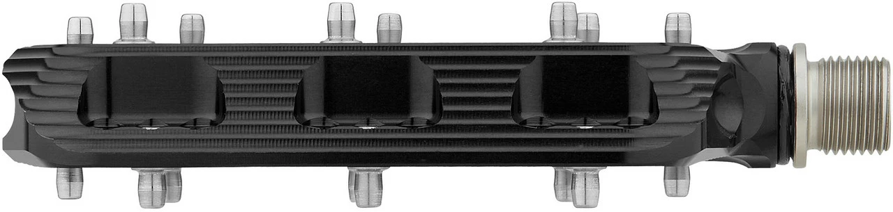 Für mehr Druck auf die Pins sorgt der tiefe Stand, der durch die konkave Standfläche erreicht wird. Nicht zuletzt ist das Pedal aber auch extrem robust. Der massive CNC-gefräste Pedalkörper hält auch hartem Bodenkontakt ohne Verzug stand und die Abstimmung der Lagerluft bei der Montage der Achslager garantiert ein verschleißarmes System.