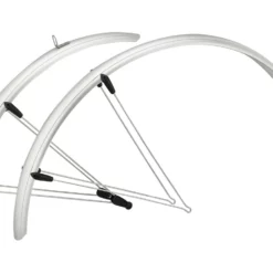 Das Hebie Rainline Grip-Type Schutzblech Set besteht aus zwei superleichten, rostfreien Aluminium-Schutzblechen mit PET-Kunststoffmantel. Sie lassen sich über die Grip-Type-Streben problemlos montieren. Dabei kommen am Vorderrad sogen. SECU-Clips zum Einsatz, die für den Fall, dass sich ein Fremdkörper im Schutzblech verfängt, die Strebenbefestigungen lösen. Eine Schiebebrücke für hinten wird ebenfalls mitgeliefert. Da alle für das Schutzblech verwendeten Materialien recycelbar sind, leistet das Rainline nicht nur einen Beitrag zum Schutz des Fahrers, sondern auch zum Schutz der Umwelt.