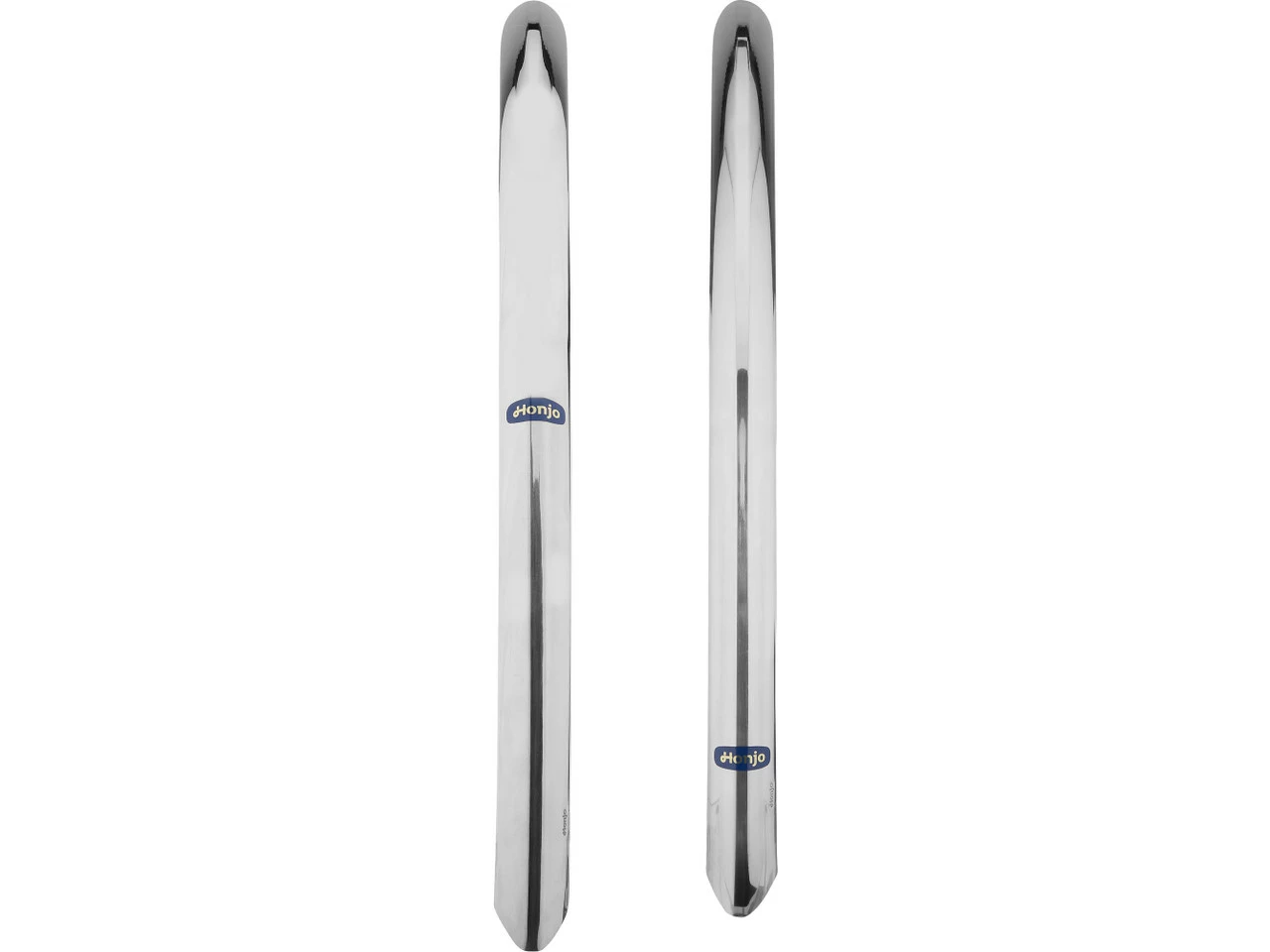 Das H27 Schutzblech Set von Honjo gehört zu den legendären auf Hochglanz polierten Klassikern aus Japan. Die Schutzbleche decken eine Reifenbreite von bis zu 25 mm ab. Mit dem besonders weit umfassenden Profil wird Spritzwasser einwandfrei im Blech gefangen gehalten. Das heißt, auch Füße und Kurbel bleiben trocken. Zudem verfügen die handgearbeiteten Schutzbleche von Honjo über eine edle Optik, ein geringes Gewicht und eine ausgesprochen lange Haltbarkeit. Das H27 gibt es auch als „hammered“ Version, bei Fans von klassischen Rädern eine besonders beliebte Optik.