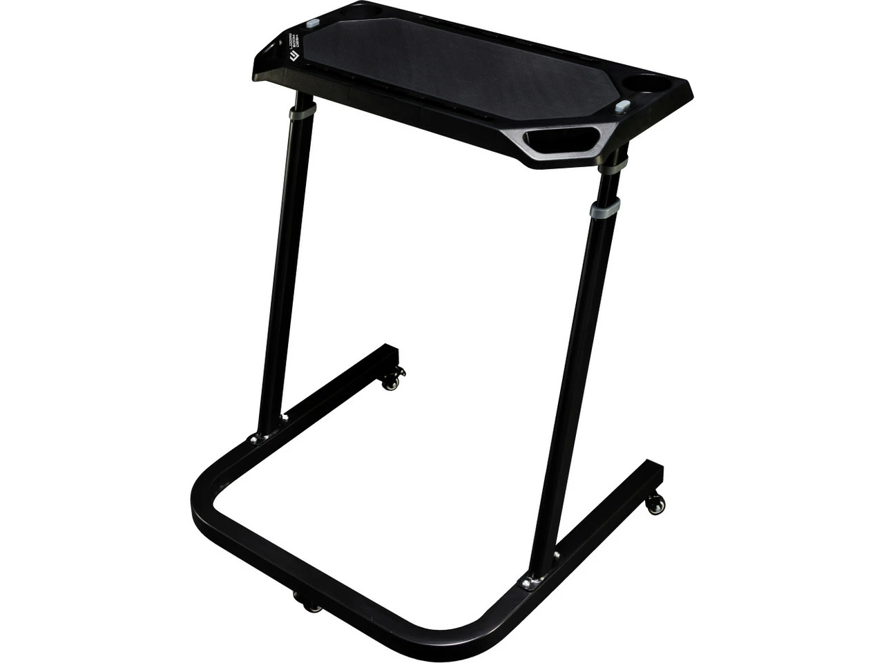 Technische Daten:Material:Kunststoff, MetallHöhe:85 cm – 120 cmMaße Arbeitsfläche (B x T):71 cm x 36 cmMaße Grundfläche (B x T):71 cm x 76 cmFeatures:höhenverstellbares Stehpult für Indoor-Trainingschafft Ablagefläche über dem Cockpit für Notebook, Gele, Riegel, ISO-Drink und Handtuchzwei Aussparungen für Trinkflaschen oder KaffeetassenHalteschienen mit Kabelöffnungen für Smartphones und Tabletsrutschfeste, gummierte Arbeitsfläche mit genügend Platz für weiteres Equipment wie Ventilator, Bluetooth-Box usw.passt über nahezu alle Rollentrainer und Smartbikesstabiles Metallgestell auf 3 Rollen, zwei hiervon per Bremse feststellbarHerstellernummer:4270002711792