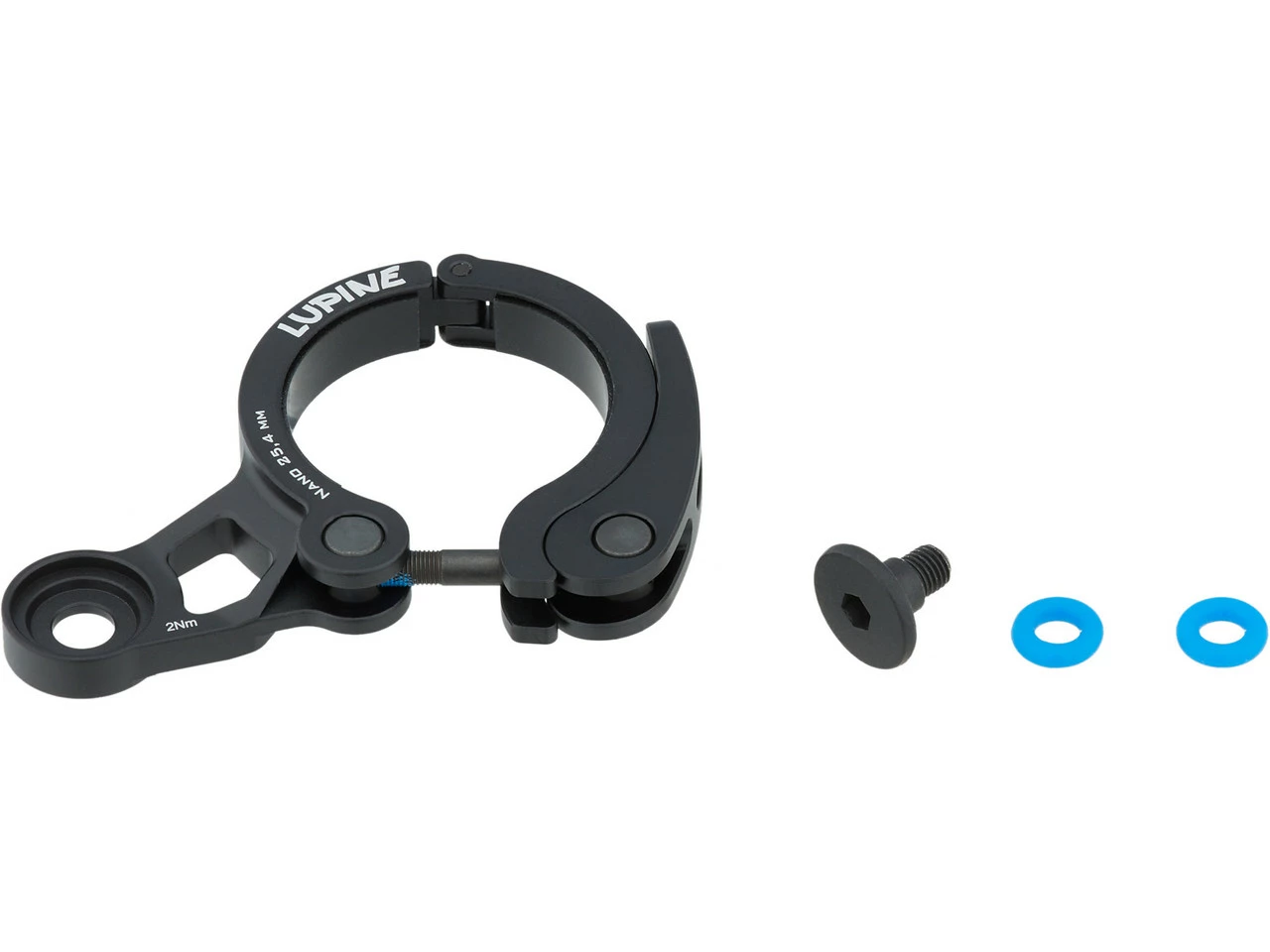 Technische Daten:Material:AluminiumKlemmung:25,4 mm, 31,8 mmFeatures:Schnellspanner zur Lenkermontage für die Lupine SL Nanoaus CNC-gefrästem AluminiumGummiauflage verhindert Kratzer und sorgt für festen HaltHerstellernummern:25,4 mm:d432531,8 mm:d4331Lieferumfang:1 x Schnellspanner Lupine SL Nano1 x Schraube Lupine2 x O-Ring Lupine