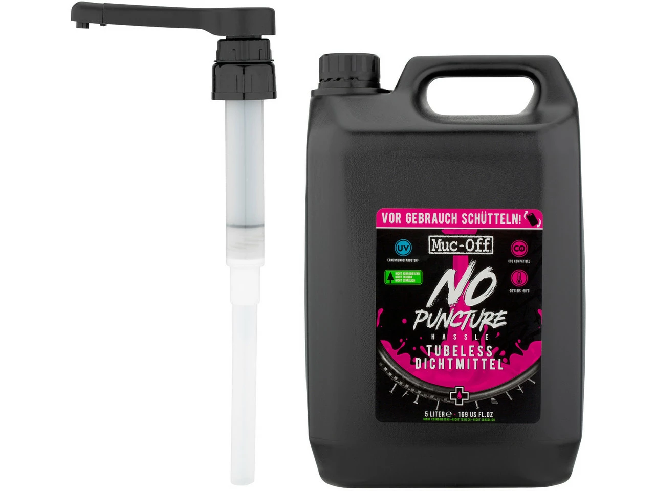 Spezifikationen:Bezeichnung:Muc-Off No Puncture Hassle Tubeless SealantAnwendungsbereich:ReifendichtmittelAmmoniakhaltig:neinFeatures:für MTB- und Road-Reifendichtet bis zu 6 mm große Risse und Löcher abverdichtet poröse Reifen und Felgenhält bis zu sechs Monate bei gemäßigtem Klima, verklumpt nichtUV-Einsticherkennungfür Reifendrücke zwischen 15 und 120 psiCO2-kompatibelAnwendung:vor Gebrauch gründlich schüttelnFahrrad, wenn möglich, auf einem Montageständer befestigenVentilstößel des SV-/Presta-Ventils mit Ventilschlüssel entfernen, bei nicht entfernbarem Ventilstößel das Dichtmittel direkt in den nicht montierten Reifen gebendas Ventil auf 12 Uhr drehen5 Liter als Nachfüllpack für Beutel oder Flasche nutzenBeutel oder Flasche von der Nicht-Antriebsseite aus ans Ventil setzen und Ventil auf 6 Uhr drehendie vorgesehene Menge ins Ventil drückenVentilstößel wieder einsetzen und Reifen aufpumpenLaufrad drehen und hin und her wackelnWarnhinweise des Herstellers:Füllmenge regelmäßig überprüfen. Nicht in der Nähe von Kindern aufbewahren. Augenkontakt vermeiden. Nicht trinken.