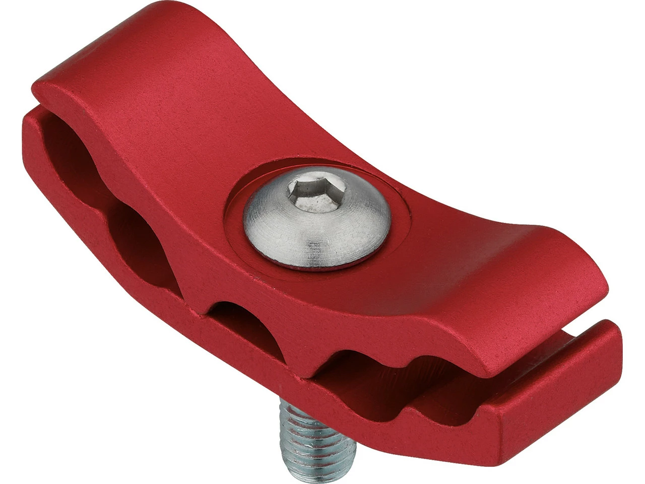 Technische Daten:Material:AluminiumFeatures:Zugführung für vier KabelCNC-gefertigtHerstellernummern:factory raw:S52200750black:S52200751orange:S52200753red:S52200754purple:S52200755blue:S52200756green:S52200758titan:S52200759Lieferumfang:1 x Kabelhalter Nicolai 4-fach, 2-teilig1 x Schraube
