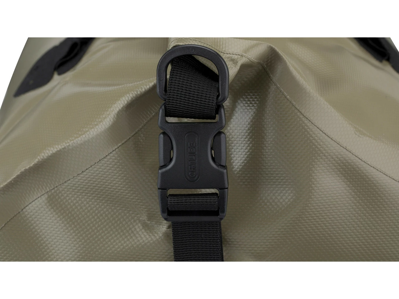 Die ORTLIEB Rack-Pack in der Größe M ist eine wasserdichte Reise- und Sporttasche mit 31 Litern Volumen, die Dir auf Deinen sportlichen Abenteuern reichlich Stauraum bietet. Für noch mehr Platz kannst Du sie mittels Steckschnallen mit den ORTLIEB Back- und Sportrollern kombinieren. Das PVC-beschichtete Polyestergewebe gewährleistet in Kombination mit dem Rollverschluss hervorragenden Schutz vor Nässe und Staub. Der Rollverschluss mit großer Öffnung erlaubt außerdem schnellen Zugriff auf den Inhalt, den Du mithilfe von Kompressionsgurten flexibel anpassen kannst, um das Packmaß bestmöglich auszunutzen. Der gepolsterte, abnehmbare Schultertragegurt bietet Dir die Möglichkeit, die Rack-Pack M bequem mitzuführen.