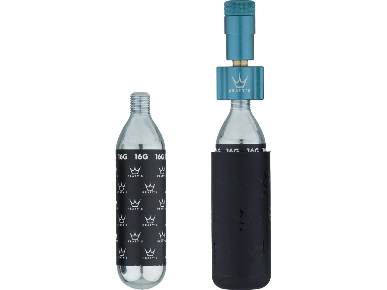 Lieferumfang:1 x Kartuschenpumpe Peaty’s Holeshot CO2 Tyre Inflator2 x CO2-Kartusche Peaty’s Holeshot CO2 Cartridge 16 g1 x Silikonhülle Peaty‘s