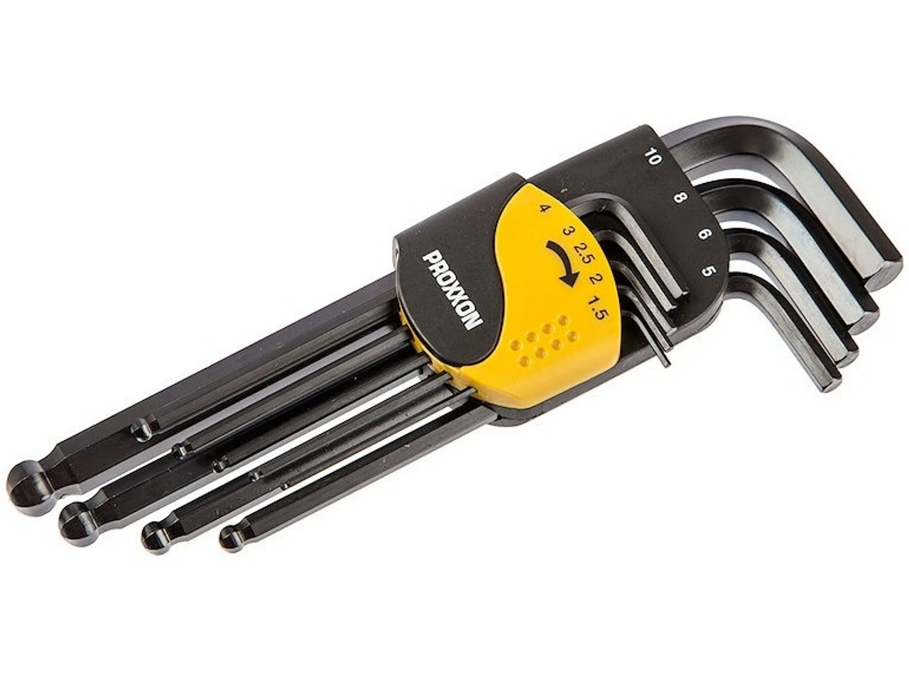 Lieferumfang:9 x Innensechskant-Winkelschlüssel Proxxon1 x Klapphalterung Proxxon