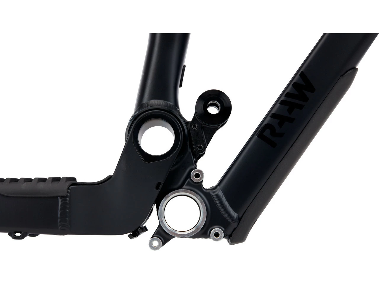 Der RAAW Mountain Bikes Madonna V2.2 Rahmen wird hier durch einen ÖHLINS TTX 2 Luftdämpfer und eine RXF38 m.2 Federgabel ergänzt, somit bekommst Du die wichtigsten Komponenten für ein langlebiges, robustes Enduro-Bike. Die Federgabel ermöglicht Dir die Einstellung von High- und Low-Speed-Druckstufe und glänzt mit Traktion und Komfort im 38-mm-Chassis. Auch beim Luftfederdämpfer kannst Du High- und Low-Speed-Compression einstellen, außerdem bietet er ein sensibles Ansprechverhalten und hohe Kontrolle. Mitgeliefert wird direkt ein passender Acros Steuersatz. Im Vergleich zum Vorgänger wurden beim Madonna V2.2 vor allem das Sitzrohr und damit zusammenhängende Schnittstellen wie Tretlager, Hinterbaugelenke und Dämpferaufnahme überarbeitet. RAAW haben außerdem ein eigenes Steckachssystem entwickelt, das die Steifigkeit erhöht und das Lockern der Achse während der Fahrt verhindert. Vom Vorgänger übernommen wurden bewährte Eigenschaften, die den Charakter des Bikes ausmachen. Eine Besonderheit ist die Variation von Dämpfer und Rocker: Die 60-mm-Variante (Größen S, M, L) für 60 mm Dämpferhub ist mit dem daraus resultierenden höheren Übersetzungsverhältnis optimal für ein leichteres Fahrergewicht bis 90 kg. Die 65-mm-Variante (Größen L, XL) für 65 mm Dämpferhub eignet sich hingegen am besten für Fahrer ab 90 kg. So haben alle denselben Fahrspaß. Alle Drehpunkte und Endkappen sind abgedichtet, die Dämpferaufnahme ist ebenfalls mit Kugellagern ausgestattet. Die Bremsaufnahme ist ein eigenes Bauteil und erspart Dir zusätzliche Adapter. Mit Inserts kannst Du außerdem die Kettenstrebenlänge nach Deinen Wünschen anpassen. Damit die Wartung leichter fällt, werden alle Züge außen verlegt. Mit dem Madonna V2.2 kommst Du nicht nur schwungvoll den Berg herunter, auch bergauf zeigt es gute Klettereigenschaften. Die ausbalancierte Geometrie ermöglicht eine zentrale Sitzposition kombiniert mit Laufruhe und Berechenbarkeit. Und auch an Deine Ausrüstung ist gedacht: Am Oberrohr befinden sich zwei Gewinde zur Befestigung von Zubehörtaschen, damit Du auch ohne Rucksack das Wichtigste immer direkt dabei hast.