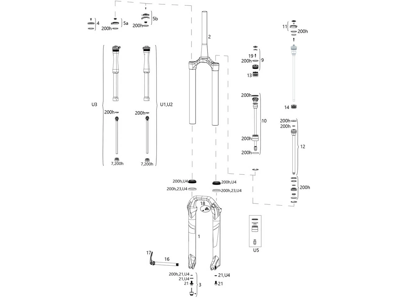| Ausführungen | U1/RC2, U2/RCT3, U4/universal, U5/35 mm, 200 h/Charger 2.1, DebonAir, 200 h/DebonAir, 5b/universal, 9/schwarz, 10/180 mm, 10/170 mm, 10/160 mm, 10/150 mm, 11/universal, 12/29+ 180 mm, 29" 160 mm, 12/29+ 170 mm, 29" 150 mm, 12/29+ 160 mm, 27,5" 160 mm, 13/universal, 14/universal, 16/schwarz, 15 x 110 mm, 1,50 mm, 156,5 mm, 18/schwarz |