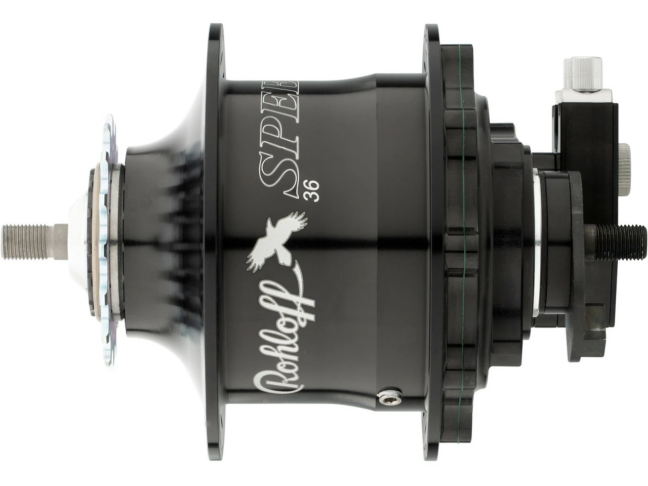 Spezifikationen:Serie:Speedhub 500/14Einsatzbereich:Touring/Trekking, CityGänge:14Bremssystem:Felgenbremse oder DiscAchssystem:10 mm Schraubachse (TS = Touring Schraubachse)Einbaubreite:135 mmLochzahl:32 Loch, 36 LochTechnische Daten:Übersetzungsbandbreite:526 %Material:Aluminium, StahlAchslänge:171 mmSpeichengröße:2,7 mmLochkreisdurchmesser:100 mmFlanschbreite:3,2 mmFlanschabstand:58 mm (29 mm/29 mm)Versatz:0 mmFeatures:extrem wartungsarm und robustperfekte Verarbeitung (zu 99 % Made in Germany)gleichmäßiges Schalten (13,6 %) mit Schaltdrehgriff, auch im Stand95 – 99 % Effizienz, 14 effektive Gänge, keine Überlappungenkompatibel mit 1/2″ x 3/32″ Fahrrad-Schaltungsketten57 mm Kettenliniekompatibel zu Gates Carbon Drive Riemenantrieb25 ml maximale Ölfüllungmaximales Eingangsdrehmoment 130 Nminklusive 16-Zähne-Steckritzel (13-19 Z und 21 Z optional erhältlich, Schraubritzel nur noch als Restposten)kleinster zulässiger Übersetzungsfaktor für Solofahrer bis 100 kg = 1,9 (40/21, 36/19, 34/18, 32/17, 30/16, 28/15, 28/14, 26/13)kleinster zulässiger Übersetzungsfaktor für Fahrer über 100 kg = 2,5 (53/21, 48/19, 45/18, 42/17, 40/16, 38/15, 36/14, 34/13)Ausführungen:Typ 1: TS