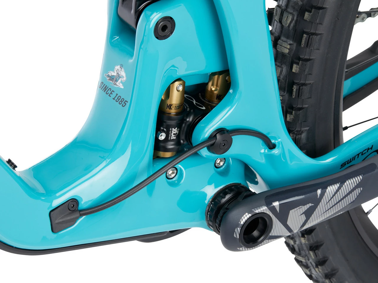 Das patentierte Switch-Infinity-Design zeichnet sich durch das auffällige Link-Element am Hauptdrehpunkt aus, welches neben einer radialen auch eine axiale Bewegung ermöglicht. Am Anfang des Federwegs verschiebt sich der Drehpunkt nach oben, damit der Hinterbau auch den gröbsten Hindernissen auf dem Trail ausweichen kann. Diese Position wirkt den Antriebseinflüssen entgegen und lässt Dein Bike förmlich den Hang hinauffliegen. Befindet sich das Bike jedoch weiter unten im Federweg, senkt sich der Switch Infinity Link wieder ab und vermittelt Dir ein Gefühl von endlosem Federweg, mit dem Du jeden Trail bezwingen willst. Die überarbeitete V2-Variante punktet mit erhöhter Haltbarkeit und einfacherer Wartung. Eine schwimmend gelagerte Achse sichert die oxidbeschichteten, besonders korrosionsbeständigen Lager am Switch Infinity Link präzise und ohne Spiel. Maschinengefertigte Lagerdeckel aus Aluminium halten Schmutz von den Lagern fern. Die Gleitbuchsen, die für die axiale Auf- und Abbewegung sorgen, sind mit einer verschleiß- und extrem reibungsarmen Beschichtung versehen und lassen sich durch Schmiernippel leicht abschmieren.