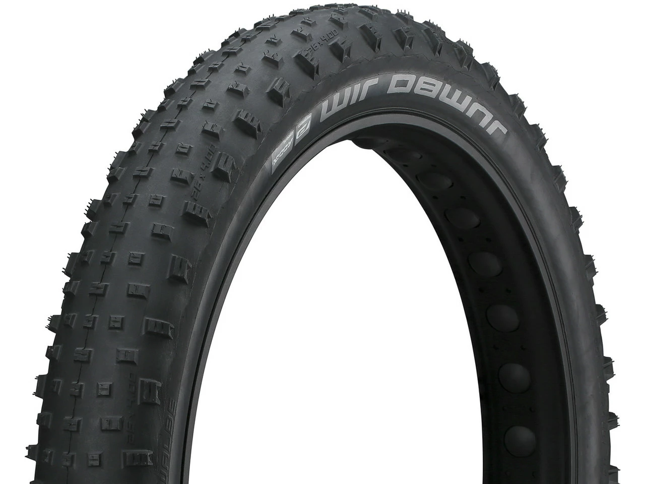 Mit dem Jumbo Jim präsentiert Schwalbe einen extrem leichten Fatbike Reifen, welcher dank seines großen Volumens mit äußerst geringem Luftdruck gefahren werden kann, ideal für unwegsames Gelände, auf tiefen Böden oder sehr losen Untergründen.
