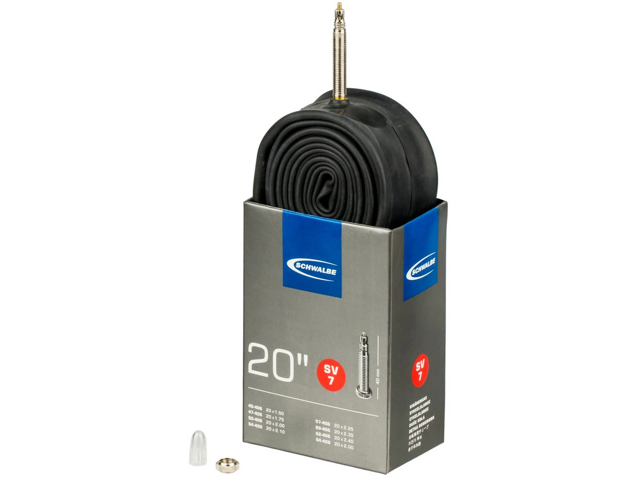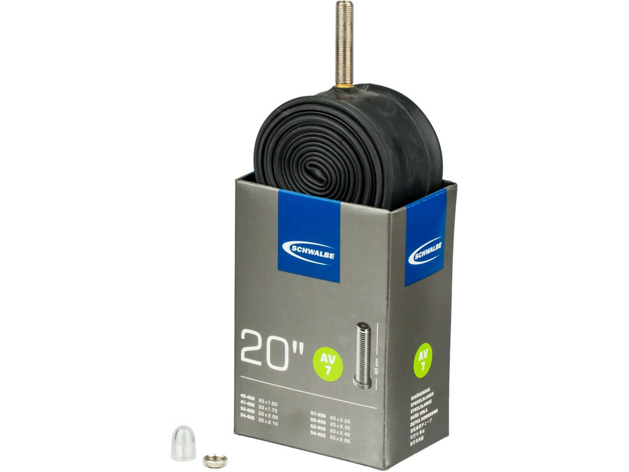 Spezifikationen:Einsatzbereich:BMX, Trial, All MountainETRTO:40-406 bis 54-428Reifendimension:20 x 1,50 bis 20 x 2,50Schlauchmaterial:ButylVentilart:AV 40 mm, DV 40 mm, SV 40 mmPassende Dimensionen (ETRTO):20 x 1,50 (40-406)20 x 1,75 (47-406)20 x 2,00 (50-406)20 x 2,10 (54-406)20 x 2,125 (57-406)20 x 2,35 (60-406)20 x 2,50 (62-406)20 x 2,00 (54-428)Ausführungen:20×1,5-2,0 AV