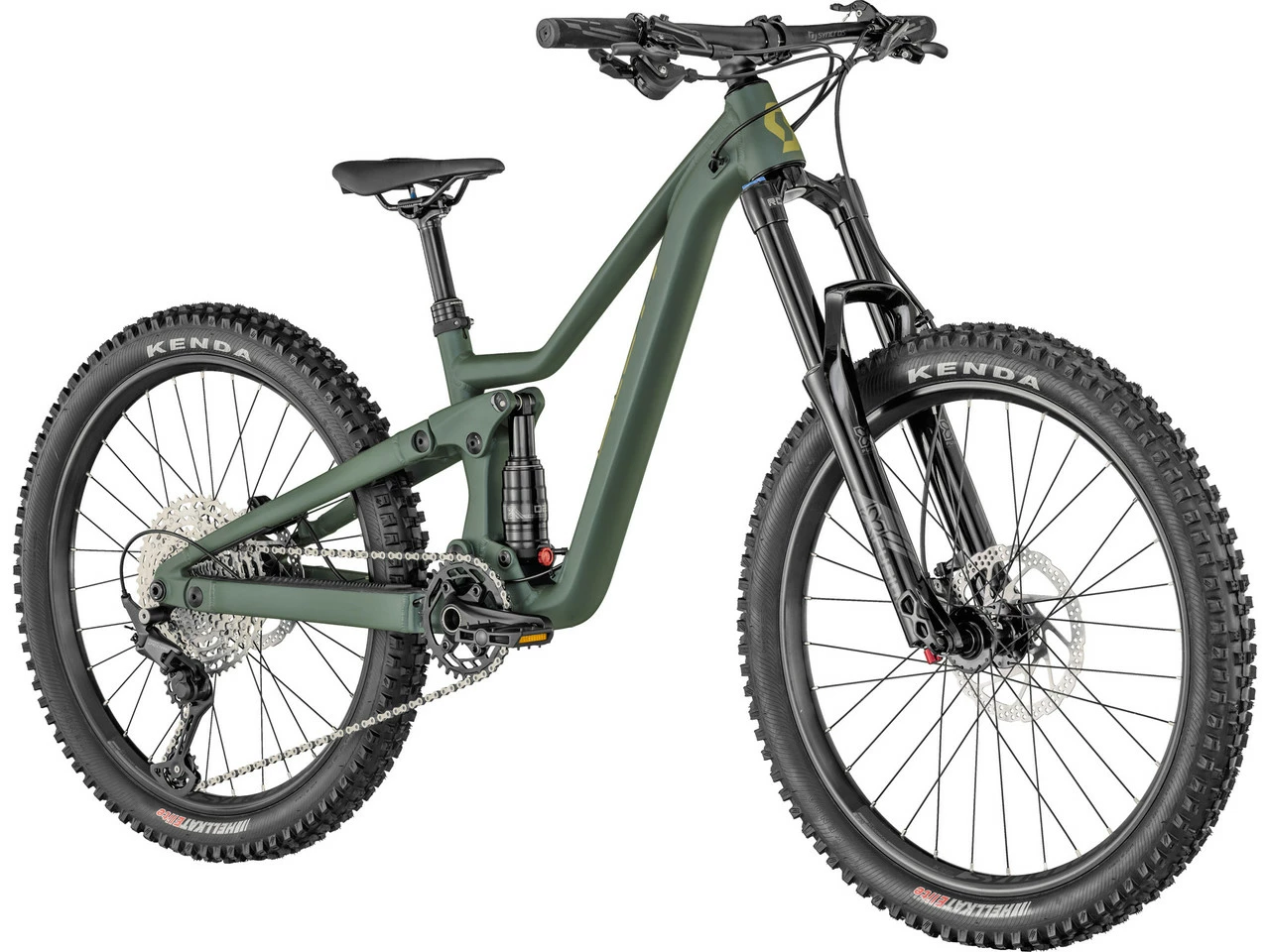 Spezifikationen:Einsatzbereich:Kids, All Mountain, EnduroLaufradgröße:24″Federweg vorne:140 mmFederweg hinten:130 mmMaterial Hauptrahmen:Aluminium (6061)Material Hinterbau:Aluminium (6061)Komponenten:Rahmen:Scott Ransom 24″ /26″ , 12 x 148 mm Boost, taperedGabel:X-Fusion Slant RC 26, 15 x 110 mm Boost, tapered, 140 mm FederwegVorbau:Syncros Oversized, Aluminium (6061), 31,8 mm, 7°, 1 1/8″Lenker:Syncros T-Bar, Aluminium (6061), 9° Backsweep, 600 mmGriffe:Syncros Youth 115Dämpfer:X-Fusion 02Pro R Trunnion, Rebound Adjust, 130 mm Federweg, 45 mm HubRemote System:Syncros Dropper DucanSteuersatz:Syncros OE Press Fit, 1,5″ – 1 1/8″Sattelstütze:Syncros Dropper Ducan, 31,6 mm, 80 mmSattel:Syncros Future ProKurbel:Prowheel CHARM-32T 2P Boost, 127,0 mm, 32 ZähnePedale:Wellgo J345, mit ReflektorBremsen:Shimano BR-MT500, 180 mm (VR), 160 mm (HR)Schalthebel:Shimano Deore SL-M5100-RSchaltwerk:Shimano Deore RD-M5100, 11-fachKassette:Shimano CS-M5100-11, 11-51 ZähneKette:KMC X11Felgen:Syncros DP30, 30 mm Innenweite, 32 LochSpeichen:EdelstahlVorderradnabe:Formula DC-71, 15 x 110 mm BoostHinterradnabe:Formula DC-3248, 12 x 148 mm BoostReifen Vorderrad:Kenda Hellkat K1201, 24 x 2,4″ , 60 tpiReifen Hinterrad:Kenda Hellkat K1201, 24 x 2,4″ , 60 tpiFreigaben:Gewichtsbeschränkung:80 kg SystemgewichtFeatures:Jugend- und Kids-MTB für den BikeparkFlip-Chip: ein Rahmen, zwei Laufradgrößen (24″ , 26″ ), ohne die Gabel zu tauschenGeometrie:Stack:553,6 mmReach:366,8 mmSitzrohrlänge:320 mmEffektive Oberrohrlänge:497,7 mmSteuerrohrlänge:90 mmKettenstrebenlänge:422,6 mmRadstand:1078,3 mmTretlagerhöhe:305 mmBB Drop:13 mmSitzwinkel:76,7°Lenkwinkel:65,7°Überstandshöhe:597,9 mmVorbaulänge:40 mmLenkerbreite:600 mmHerstellernummer:286604222