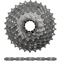 Dieses Shimano Dura-Ace 11-fach Verschleißset besteht aus der CS-R9100 Kassette und der CN-HG901 Quick-Link Kette. In ihm vereinen sich Performance, Leichtgewicht und Reibungsarmut zu einem Top-Produkt für den Wettkampfeinsatz.