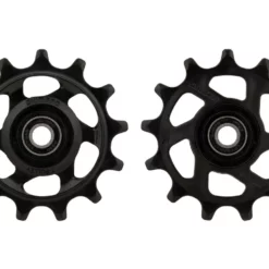 Das Shimano XTR 12-fach Schalträdchen-Set besteht aus einer Spann- und einer Leitrolle, die je 13 Zähne aufweisen. Die Rädchen sind sowohl mit RD-M9100 wie mit dem RD-M9120 Schaltwerk kompatibel. Gedichtete Präzisionslager sorgen für einen reibungsarmen und leichten Lauf.