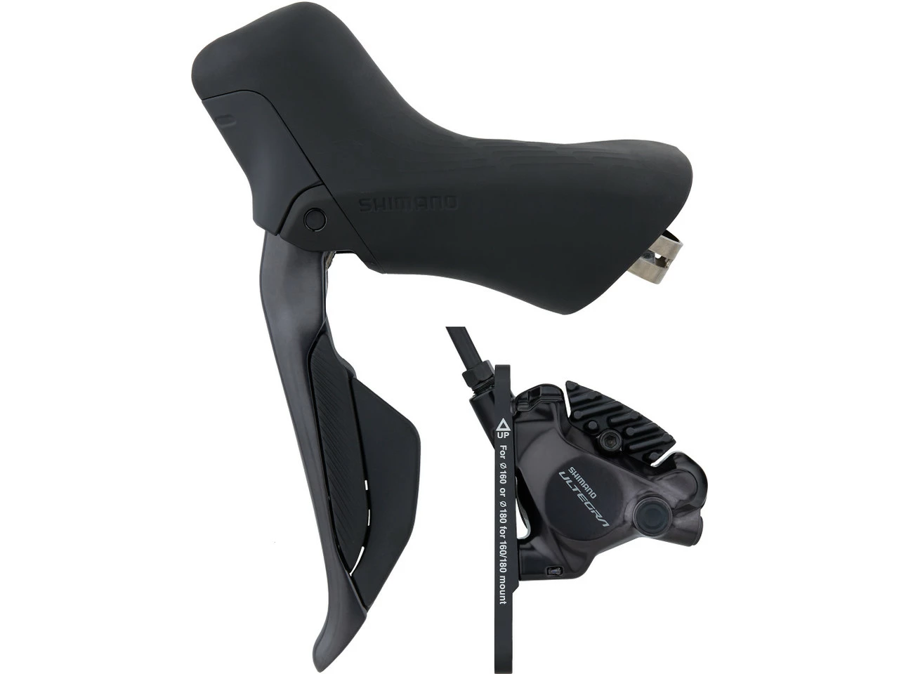 Die Shimano Ultegra Scheibenbremse mit BR-R8170 Bremssattel und ST-R8170 Di2 Schalt-/Bremsgriff