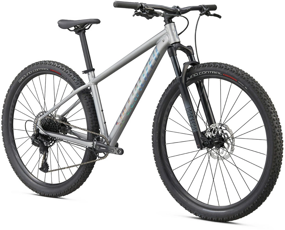 Spezifikationen:Einsatzbereich:All MountainLaufradgröße:29″Federweg:90 mm, 100 mmGrößen:S, M, L, XL, XXLMaterial Rahmen:Aluminium (A1)Komponenten:Rahmen:Specialized Rockhopper, konifiziertes Premium-Aluminium, 10 x 135 mmGabel:RockShox Judy, Solo Air, Turnkey Dämpfer, Aluminium-Gabelschaft, 46 mm Vorlauf, 97 mm Nachlauf, 9 x 100 mmVorbau:Stout, 6°, 31,8 mm, Aluminium (3D-geschmiedet)Lenker:Stout Mini Rise, 15 mm Rise, 9° Backsweep, 31,8 mm, AluminiumGriffe:Specialized Trail Lock OnRemote System:ohneSteuersatz:ZS44/28,6 – ZS44/30Sattelstütze:Aluminium, 30,9 mm, 12 mm Setback, 2-Schrauben-KlemmungSattel:Specialized Bridge Sport, StahlstrebenKurbel:SRAM SX Eagle, Powerspline, 30 Z; SRAM Powerspline InnenlagerPedale:ohneBremsen:Shimano BR-MT200, hydraulische Scheibenbremse, 180 mm/160 mmSchalthebel:SRAM SX Eagle, Trigger, 12-fachSchaltwerk:SRAM SX Eagle, 12-fachKassette:SRAM PG-1210 Eagle, 11-50 ZKette:SRAM SX Eagle, 12-fachFelgen:Aluminium, 25-622, Offset-Design, Tubeless ReadySpeichen:Edelstahl, 14 GVorderradnabe:Shimano HB-RM35, Disc Center Lock, 9 x 100 mm Schnellspanner, 28 LochHinterradnabe:Shimano FH-RM35, Disc Center Lock, 10 x 135 mm Schnellspanner, 32 LochReifen Vorderrad:Specialized Ground Control, 60 tpi Control Karkasse, GRIPTON® Gummimischung, 2Bliss Ready, 29″ x 2,3″Reifen Hinterrad:Specialized Ground Control, 60 tpi Control Karkasse, GRIPTON Gummimischung, 2Bliss Ready, 29″ x 2,3″Freigaben:Gewichtsbeschränkung:136 kg (Fahrer + Gepäck)Bremsscheibengröße max.:180 mmReifengröße max.:29″ x 2,3″Features:leichtes, aber steifes Materialerhöhte Schrittfreiheitgrößenspezifischer FederwegASTM-Kategorie 3interne KabelführungScheibenbremse mit Kettenstrebenmontageaustauschbares Aluminium-SchaltaugeGepäckträgeraufnahmenmit verstellbaren Sattelstützen kompatibelSchläuche mit 40 mm SV-VentilGeometrie:(basierend auf einer Gabeleinbaulänge von 505 mm (S) bzw. 515 mm (M – XXL))