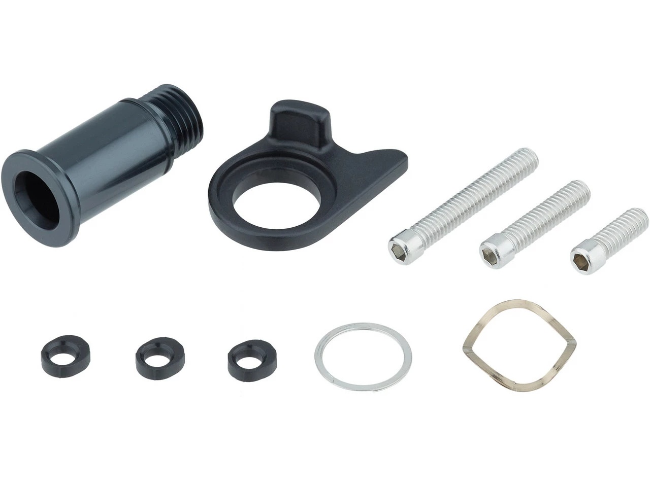 Lieferumfang:1 x Schaltwerkschraube1 x B-Einstellscheibe1 x Sicherungsring1 x Wellfederscheibe1 x B-Einstellschraube2 x Begrenzungsschraube3 x Unterlegscheibe