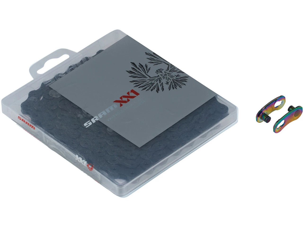 Innenlaschen verchromt mit PVD-Beschichtung (nur XX1)Innenlaschen brüniert (nur GX)Außenlaschen vernickeltAußenlaschen mit PVD-Beschichtung (nur XX1)Flow Link- und Hard Chrome™-Technologien für geringeren Verschleißfarblich passend zu Eagle-Komponentenleise und haltbarstarkes PowerLock KettenschlossFarbindex:Die Farbauswahl setzt sich zusammen aus der Farbe der Kassette an erster Stelle sowie Serie und Farbe der Kette an zweiter Stelle.