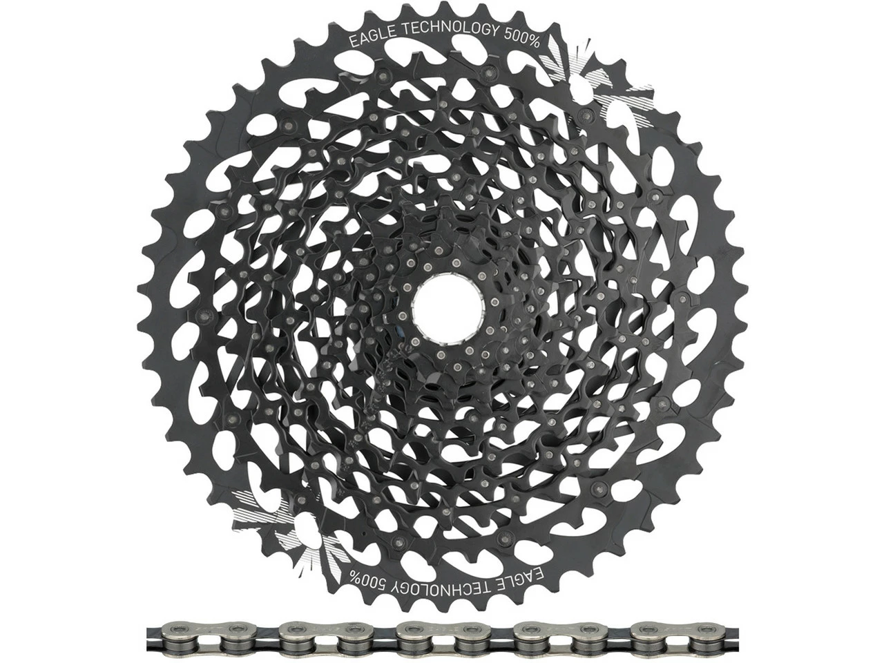 Das Verschleißset aus GX Eagle XG-1275 Kassette und einer Eagle Kette von SRAM für 12-fach ist die optimale Kombination aus Performance und Präzision