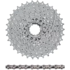 Technische Daten Kassette:Einsatzbereich:MTBMaterial Ritzel:Stahl, Satin verchromtMaterial Verschlussring:AluminiumSchaltstufen:9Abstufungen:11-32 Z oder 11-34 Zempfohlene Kette:PC 991, PC-971, PC 951Technologie:PowerGlide IITechnische Daten Kette:Material:StahlSchaltstufen:9-fachGlieder:114Außenlasche:Nickel-beschichtetInnenlasche:grauStiftbehandlung:chromverstärktNietentyp:StepVerschlussglied:PowerLink™empfohlene Gruppe:X9 / X7 / SX 5Features Kassette:hohe Festigkeit und Langlebigkeitexakte Gangwahl ermöglicht schnelles Rauf- und Runterschaltenmit PowerGlide II-TechnologieFeatures Kette:nickelbeschichtete Außen-, graue Innenlaschengewölbte Außen- und abgeschrägte Innenlaschendurch das PowerLink™-Verschlussglied lässt sich die Kette völlig problemlos und ohne Werkzeug schließenTechnologien:PowerGlide II: