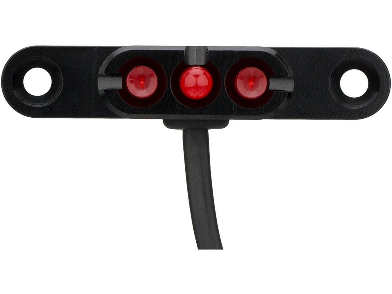 Spezifikationen:Ausführung:Rücklicht (rot)Montage:GepäckträgerLeuchtmittel:3 x LED (5 mm)Betriebsmittel:E3 Frontlampe, E-Bike-AkkuTechnische Daten:Maße (H x B x T):30 x 10 x 10 mmMaterial:Aluminium AL 6061Spannung:6 VFreigaben:Zulassung im Straßenverkehr:Ja, für Fahrräder nach §67 StVZOPrüfziffer:K~~915Features:Variante mit praktischem Kabelausgang nach untenfür 6-V-Gleichstrom an E3-Frontscheinwerfer oder E-Bike250 ° Abstrahlwinkel4 x heller als die Vorversion50mm Montagelochabstandwird vom E3-Frontscheinwerfer mit Standlichtstrom versorgtPedelecbetrieb: Energieversorgung über E-Bike-SystemKabellänge zum Frontlicht/Akku: 95 cmzugelassen im Bereich der StVOHerstellernummer:N-TK2FR-BLK