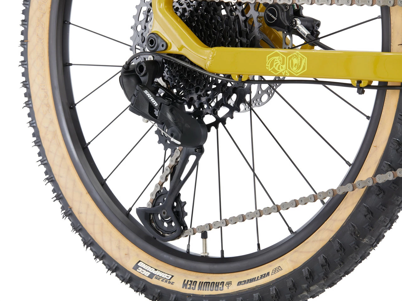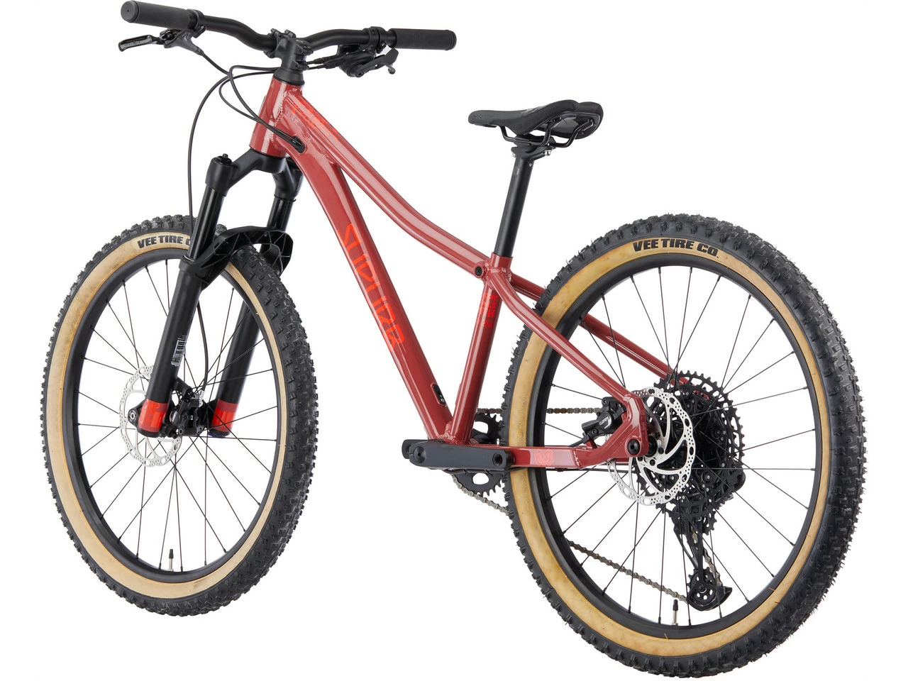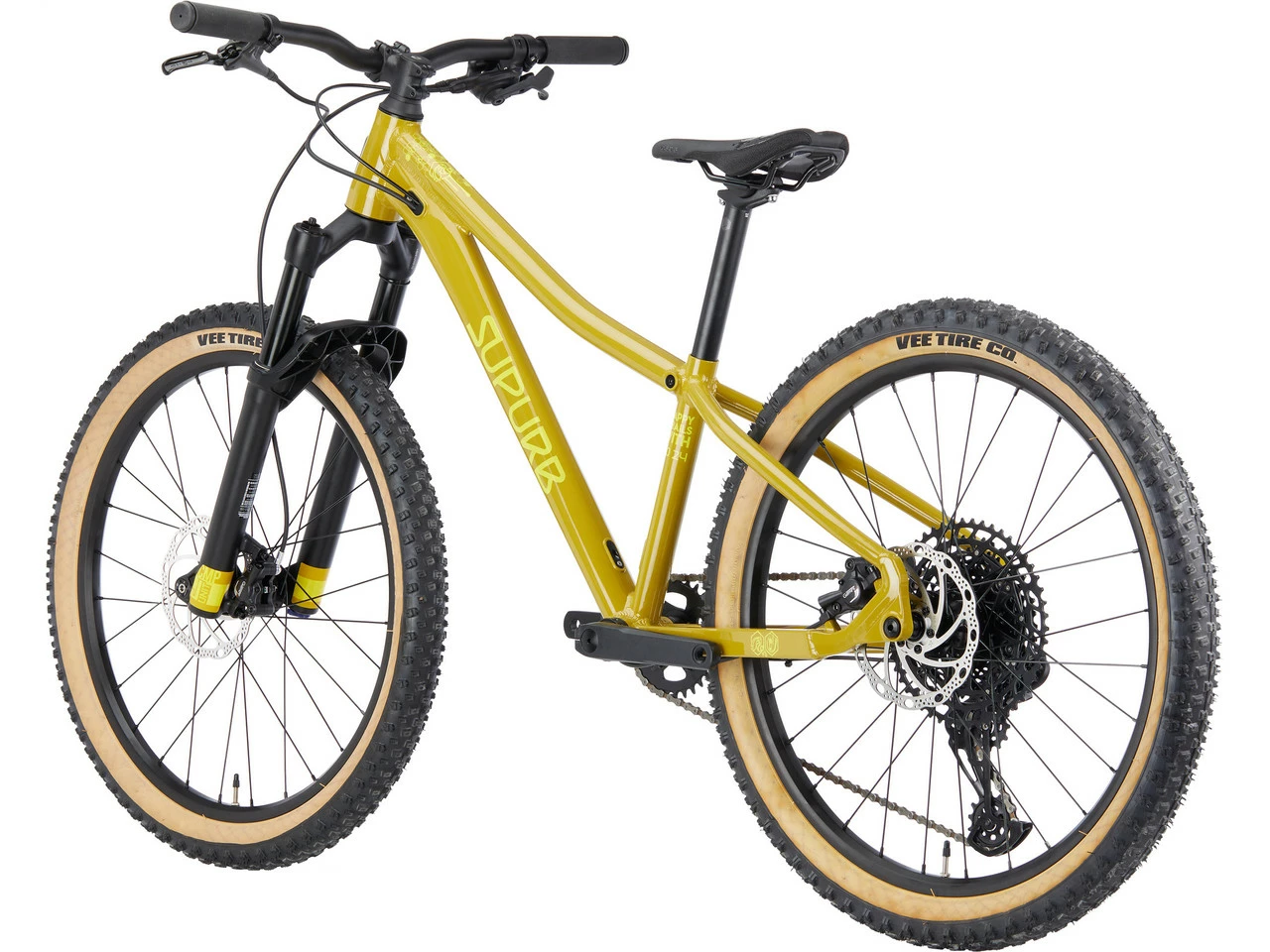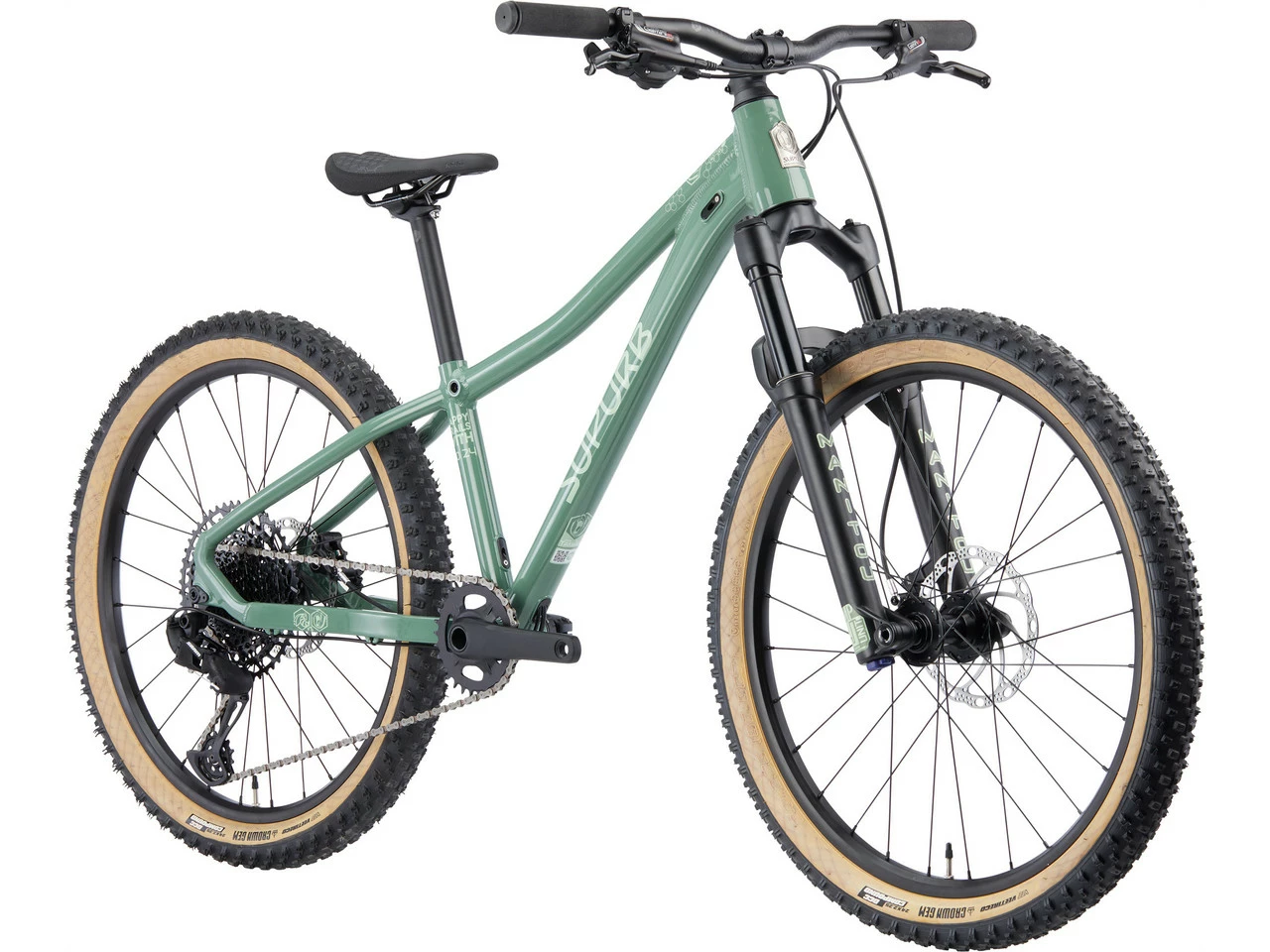 Spezifikationen:Einsatzbereich:KidsLaufradgröße:24″Altersempfehlung:8 – 11 JahreMaterial Rahmen:Aluminium (6061)Material Gabel:Aluminium (6061)Komponenten:Rahmen:SUPURG BO24Gabel:Manitou Junit Comp, 100 mmVorbau:LEVELNINE Race Kids 25.4, Aluminium, 25,4 mm, 10°Lenker:LEVELNINE Race Kids 25.4 20 mm Riser-Lenker, Aluminium, Breite 640 mm, Rise 20 mmGriffe:Velo 120 mm Push-OnSteuersatz:Acros AZ-44 ZS44/28|ZS56/40Sattelstütze:LEVELNINE, Aluminium, Durchmesser 27,2 mm, Länge 300 mm, SB 10 mmSattel:SUPURB BO24Kurbel:Samox 150 mm NQF Direct Mount, 30 ZPedale:WELLGO PlattformpedaleBremsen/Bremshebel:Tektro Gemini SL HD-M521Schalthebel:SRAM SX Eagle, 12-fachSchaltwerk:SRAM SX Eagle, 12-fachKassette:SRAM PG1210 Eagle, 11-50 ZKette:SRAM SX Eagle, 12-fachLaufräder:Felge: Double Wall, 28 LochReifen:VEE Tire Co. Crown Gem 24×2,25″Freigaben:Gewichtsbeschränkung:60 kgBremsscheibengröße max.:160 mmReifengröße max.:57-507 (24×2,25″ )Kettenblattanzahl:1-fachKettenblattgröße max.:30 ZGabeleinbaulänge max.:455 mmFeatures:24-Zoll-Mountainbike für Kids mit Federgabel und 12-fach GangschaltungFedergabel mit 100 mm Federwegauf Kinder ausgelegte Geometrie für intuitives Fahreninterne ZugverlegungScheibenbremsen mit Griffweiteneinstellungauf Kinderhände angepasstes Cockpitextra breite Reifen für Komfort und TraktionGeometrie:Empfohlene Körpergröße:135 – 155 cmInnenbeinlänge min.:62 cmSattelhöhe:70 – 84 cmStack:541 mmReach:354 mmSitzrohrlänge:297 mmEffektive Oberrohrlänge:520 mmSteuerrohrlänge:110 mmVorbaulänge:40 mmLenkerbreite:640 mmKurbellänge:150 mmHerstellernummern:badger blue:4063216008815bee yellow:4063216008822fox red:4063216008792gecko green:4063216008808Versandhinweis:Der Versand erfolgt vormontiert per Spedition. Die Lieferzeit beträgt, je nach Werkstattauslastung, 2-5 Tage zusätzlich zur im Onlineshop angezeigten Lieferzeit. Für Deine individuelle Beratung steht Dir unser Service gerne zu den üblichen Servicezeiten zur Verfügung – am besten telefonisch.
