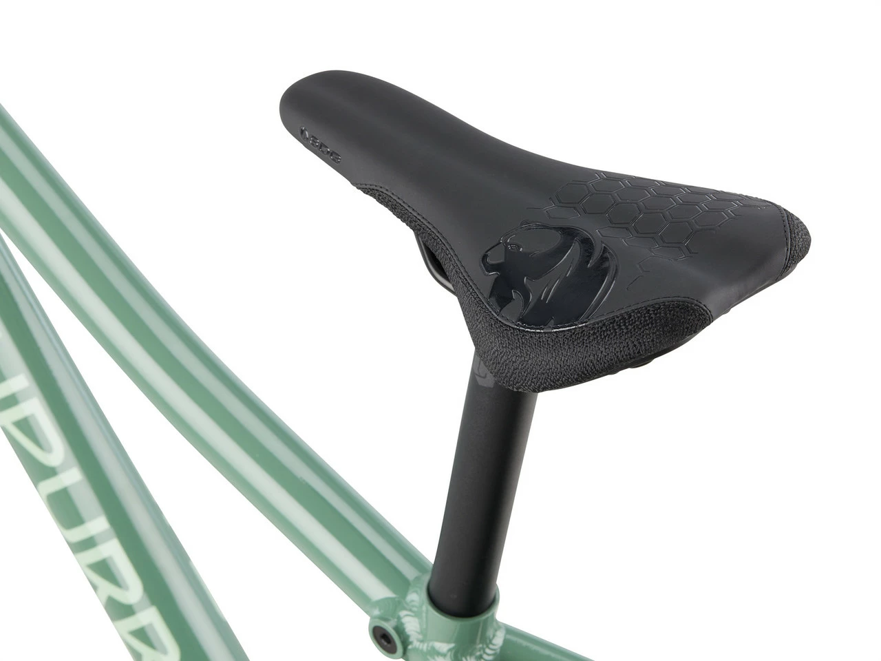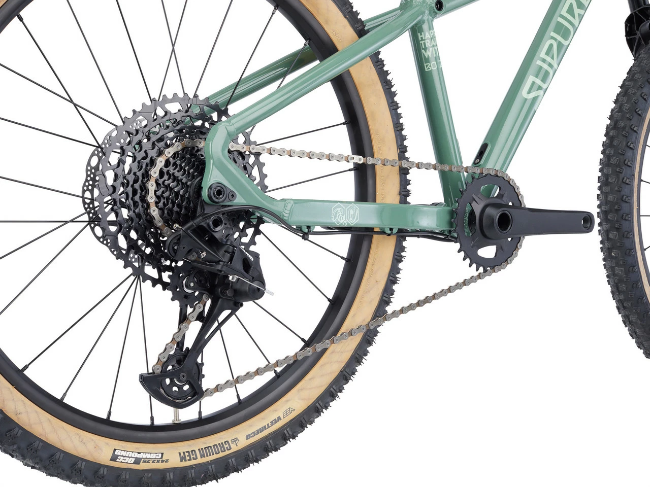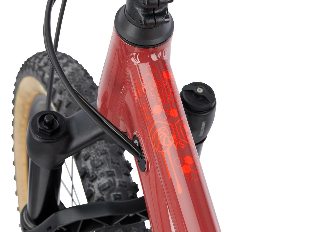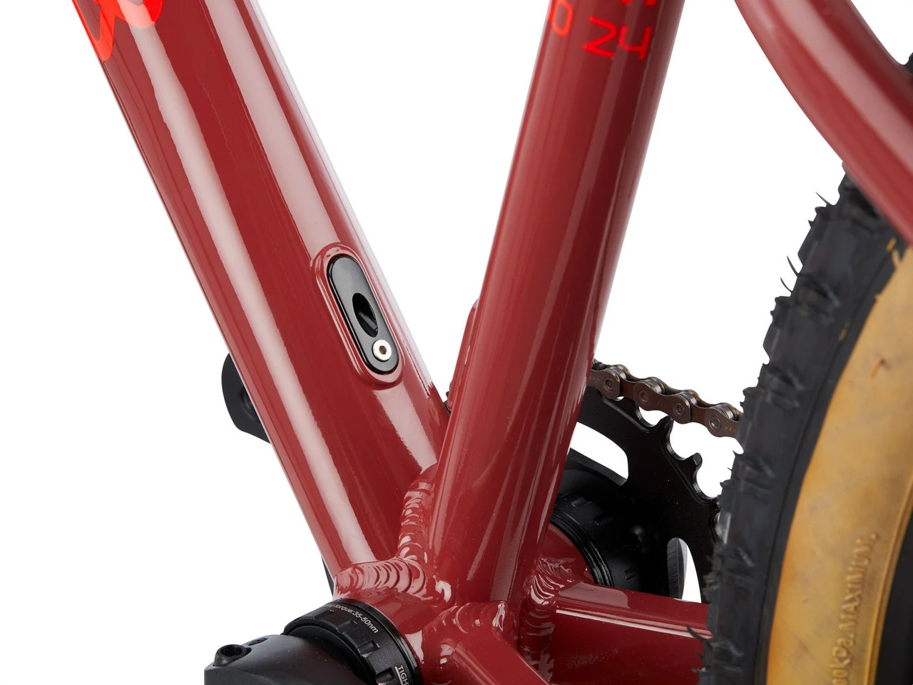 Das BO24 24-Zoll-Kinderfahrrad von SUPURB ist ein Hardtail mit Federgabel und Gangschaltung für Nachwuchsmountainbiker und eignet sich für Kids im Alter von 8 bis 11 Jahren. Damit der Spaß auf dem Bike erhalten bleibt, wurden die Bedürfnisse von Kindern bei der Entwicklung in den Mittelpunkt gerückt. Lange Kettenstreben und ein flacher Lenkwinkel führen zu einer Radlastverteilung, die auf das Fahrverhalten von Kindern optimiert ist, und zu einem tiefen Schwerpunkt. Das vermittelt viel Sicherheit bei den ersten Trailabfahrten. Da Kinder einen verhältnismäßig großen Kopf haben, der ausbalanciert werden muss, ist die Sitzposition aufrecht. Denn so kann sich Dein Kind aufs Fahren konzentrieren und ist nicht zu sehr mit der mühsamen Gleichgewichtsfindung beschäftigt. Die Junit-Comp-Federgabel von Manitou steht mit 100 mm Federweg in einem ausgewogenen Verhältnis zur Körpergröße und sorgt für ausreichend Dämpfung. Mit den 12 Gängen der leicht zu betätigenden SRAM SX-Eagle-Schaltung werden sogar steile Rampen mühelos überwunden. Auf geraden Strecken hingegen hilft das 11er Ritzel, um richtig schnell vorwärtszukommen. Die interne Zugverlegung sieht nicht nur gut aus, sondern verhindert außerdem ein Hängenbleiben an Trail-Überwuchs oder anderen Hindernissen. Kindgerechte Komponenten wie eine 150 mm kurze Kurbel, leicht zu betätigende Scheibenbremsen mit Hebelweitenverstellung, 2,25″ breite Reifen für viel Traktion und hohen Fahrkomfort und auf Kinderhände angepasste Anbauteile von LEVELNINE runden das Fahrvergnügen ab. Für fortgeschrittene Kids ist das BO24 mit einer Dropper Post aufrüstbar.