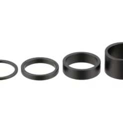 Set mit vier Spacern für Vorbauten mit 1 1/8″ . Beim Einbau muss die Mindesteinsteckhöhe des Gabelschaftes im Vorbau eingehalten werden.