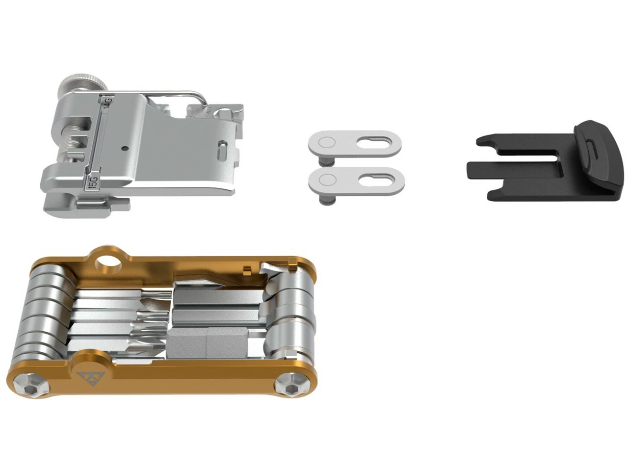 Das Mini PT30 Multitool von Topeak bietet Dir 30 durchdachte Funktionen. Für ein verbessertes Handling lassen sich Kettennieter und Kettenschlosswerkzeug vom Mini P30 abnehmen.