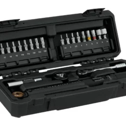 Spezifikationen:Funktion:Schraubwerkzeug mit definiertem AnzugsdrehmomentWerkzeugaufnahme:1/4″Einstellbereich:4 – 20 NmTechnische Daten:Material:Stahl, Aluminium, KunststoffLänge:22,7 mmToleranz:± 4 % vom eingestellten WertAuslöserichtung Drehmoment:rechtsAntriebsrichtung:rechts/links umschaltbarFeatures:Drehmomentschlüssel mit 4 bis 20 Nm AnzugsmomentDrehmoment-Anpassung in Schritten von 0,5 Nm30 mm lange Bits aus gehärtetem StahlInnensechskant 1,5 mmInnensechskant 2 mmInnensechskant 2,5 mmInnensechskant 3 mmInnensechskant 4 mmInnensechskant 5 mmInnensechskant 6 mmInnensechskant 8 mmInnensechskant 10 mmTorx T6Torx T7Torx T8Torx T9Torx T10Torx T15Torx T20Torx T25Torx T30Ratsche mit 1/4″ -Werkzeugaufnahme am Kopf und zusätzlich im Griffende als Verlängerung beim Schrauben per HandFingertip Bithalter mit gerändelter Grifffläche für schwer zugängliche Schraubenmagnetischer Bithalter mit freidrehendem Speed Sleeve zum Festhaltenübersichtliche Aufbewahrungsbox mit aufstellbarem Bit-OrganizerHerstellernummer:TT2601