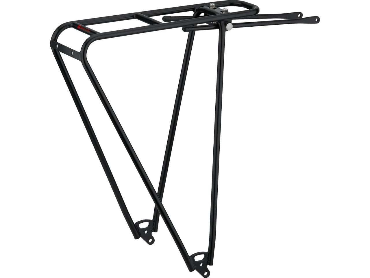 Basierend auf der Geometrie des LOGO, verzichtet er auf die seitlichen Rohrbögen zum “Tieferlegen” der Gepäcktaschen, ist dafür aber leichter. Seine Vierpunktbefestigung ermöglicht eine einfache Montage am Fahrrad.