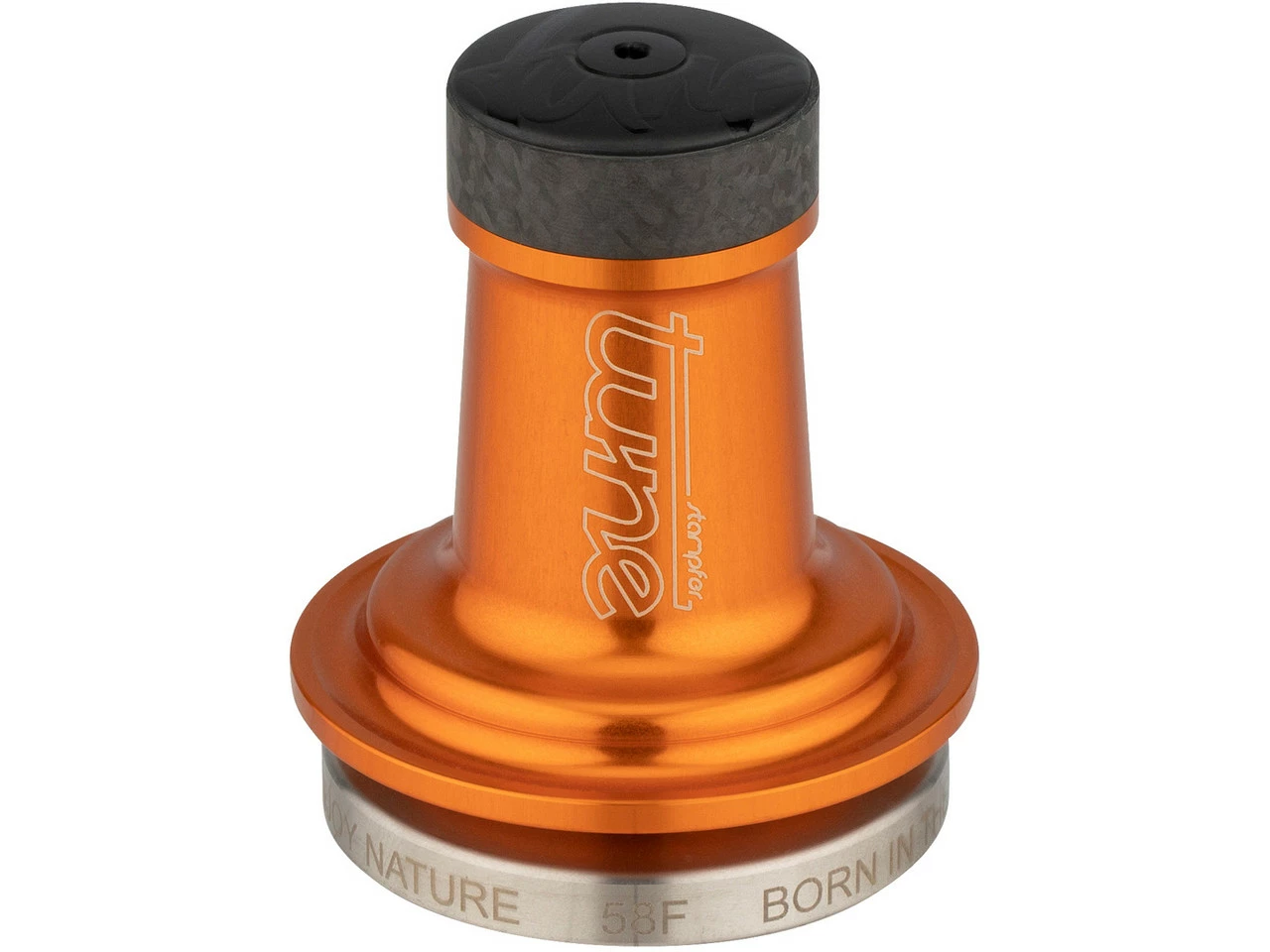 Features:Mag 150-Nabenkörper aus eloxiertem Aluminium als GriffCarbon-Deckel mit UD-Finish und tune-Logoflache Basis-Platte aus EdelstahlHerstellernummern:giftgrün:GD1400ggschwarz:GD1400swsilber:GD1400siorange:GD1400orrot:GD1400rtblau:GD1400blgold:GD1400gldLieferumfang:1 x Espressoverdichter tune Stampfer