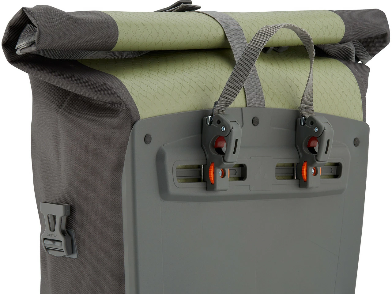 Spezifikationen:Einsatzbereich:City, Touring/TrekkingAusführung:GepäckträgerBefestigung:QMR 2.0Abmessungen (HxBxT):37 x 33 x 19 cmVolumen:24 Liter je TascheTechnische Daten:Material:Polyester, Polyamid, PU-BeschichtungenZuladung:12,5 kg je TascheFeatures:wasserdicht verschweißtPVC-freies Planenmaterialklimaneutral in Deutschland hergestelltgeräumiges Hauptfachwasserdichter WickelverschlussRollverschluss nach oben und unten schließbarabnehmbarer SchultergurtSchulterträger auch als Spanngurt nutzbarReflexlogoleicht einstellbares QMR 2.0 BefestigungssystemQMR abschließbarInnentascheTechnologien:Green Shape: